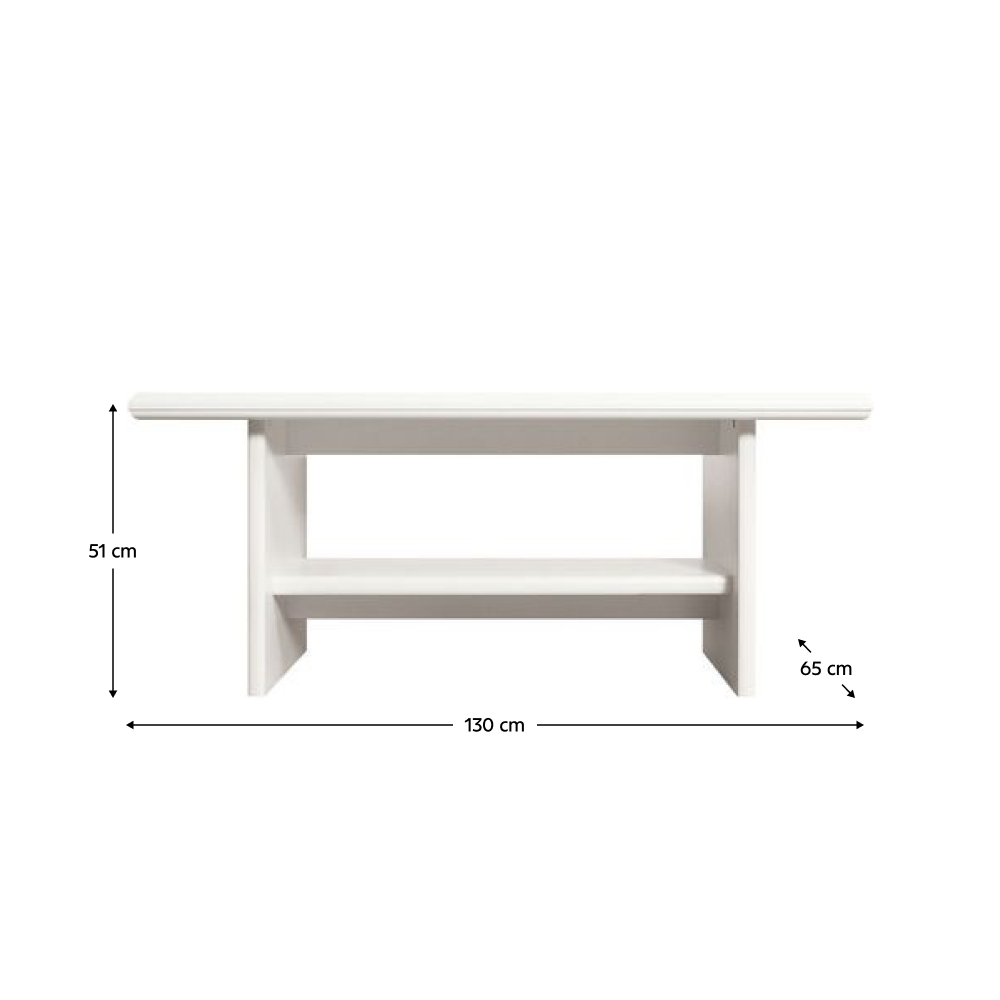 Materiál: DTD laminovanáFarba: alpská bielaRozmery (ŠxHxV): 130x65x51 cmHrúbka materiálu: 1,6 cmOtvorený úložný priestorS policouNosnosť police: 4 kgDodávané v demonte