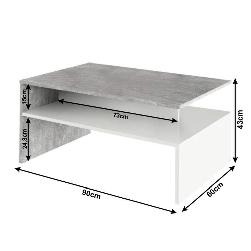 Materiál: laminovaná DTDFarba: betón/bielaRozmery (ŠxHxV): 90x60x43 cmHrúbka lamina: 16 mmS otvorenou úložnou plochouDodávané v demonte