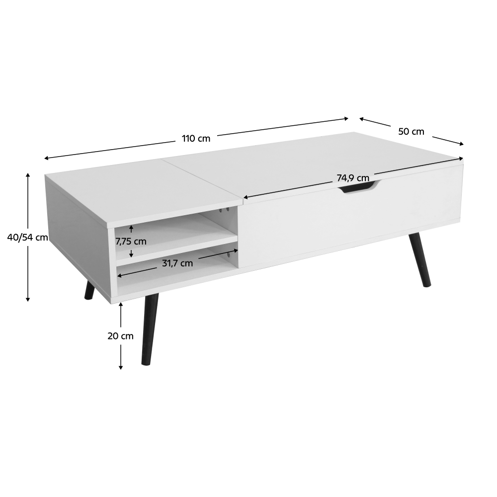 Materiál: laminovaná MDF/kovFarba: biela/čiernaRozmery (ŠxHxV): 110x50x40 cmHrúbka MDF: 1,5 cmVýškovo nastaviteľná vrchná doskaVýška zdvihnutej vrchnej dosky: 54 cmÚložný priestor pod vrchnou doskouPolicaRozmery police (ŠxV): 31,7x7,75 cmNosnosť vrchnej dosky: 25 kgNosnosť vysunutej časti: 5 kgNa nožičkáchVýška nožičiek: 20 cmDizajnovýPraktickýDodávané v demonte