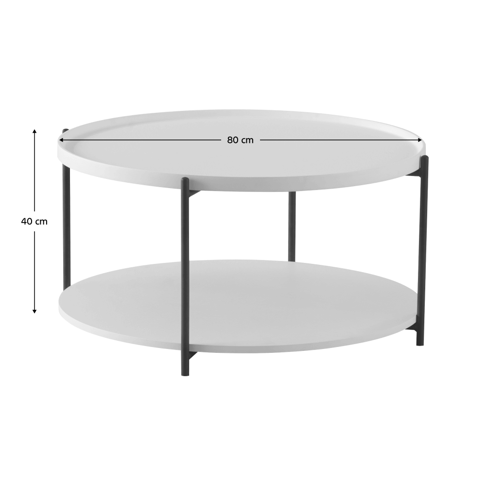 Materiál: MDF/kovFarba: biela/čiernaRozmery (PriemerxV): 80x40 cmNosnosť: 10 kgHrúbka MDF: 1,5 cmDizajnovýOkrúhlyKokové nohyDodávané v demonte