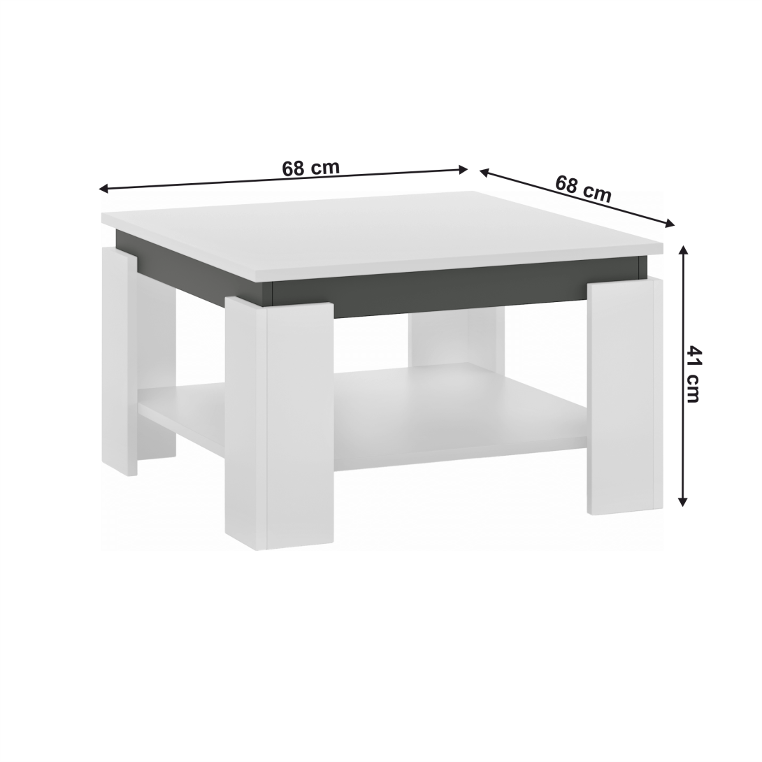 Materiál: laminovaná DTD/ABS hranyFarba: biela/grafitRozmery (ŠxHxV): 68x68x41 cmHrúbka materiálu 1,6 - 1,8 cmNosnosť vrchnej dosky: 15 kgNosnosť odkladacieho priestoru: 15 kgDodávané v demonte