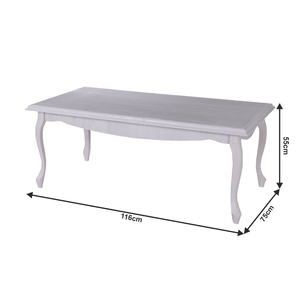 Materiál: DTD laminovaná/ABS hranyFarba: sosna bielaRozmery (ŠxHxV): 116x75x55 cmHrúbka materiálu: 30 mm3D efektDrevené nohyABS hranyBarokový štýl
