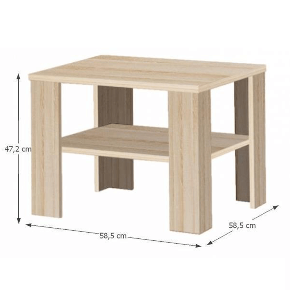 Konferenčný stolík. Materiál: DTD fóliovaná. Farba : dub sonomaRozmery (ŠxHxV): 58,5x58,5x47,2 cm. Hrúbka materiálu vrchný plát: 22 mmHrúbka materiálu korpus: 16 mmDodávané v demonte.