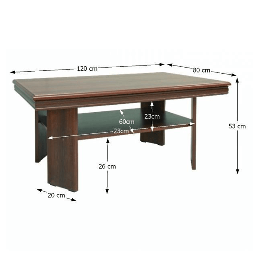 Konferenčný stolík KORA KL Materiál: laminovaná DTD, MDF, kovFarebné prevedenie: samoa king.Rozmery (ŠxHxV): 120x80x53 cmHrúbka materiálu korpus:15 mmHrúbka materiálu vrchnej dosky:22 mm Hrúbka materiálu dolnej dosky:22 mmDodávané v demonte.