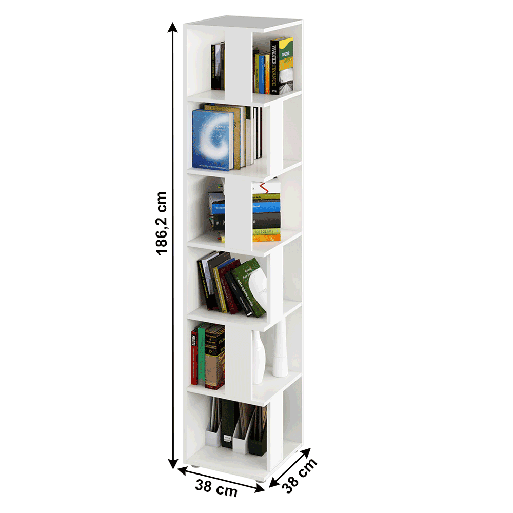 viacúčelový rohový regál KorindMateriál: DTD laminovanáFarba: bielaRozmery (ŠxHxV): 38x38x186,2 cmHmotnosť: 29 kgKvalitný slovenský výrobok6 polícNajlepšie umiestnenie do kúta miestnostiDo obývačky, detskej izby, spálne, predsieni, pracovne a pod.Dodávané v demonte