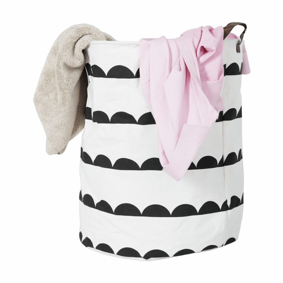 KONDELA Kôš na bielizeň, biela/vzor čierna, PLEJO TYP 2