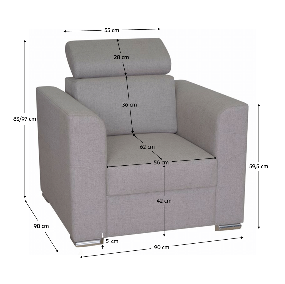Kreslo k sedacej súprave MARIETA, na objednávku Rozmery: (ŠxHxV): 90x98x83/97 cm Nosnosť na osobu: 90 kg Výška spodného priestoru od podlahy: 5 cm Materiál: látka CABLO Oderuodolnosť textílie podľa testu Martindale: 72 000 oderov Farba: béžová Dodávané v demonte, doba dodania 6-8 týždňov. Ponúkame vám možnosť zložiť si sedačku vo vlastnom rozmere a podľa vlastných potrieb. Komponenty na zloženie hľadajte v našej ponuke. Máme pre vás hneď sedem farieb látky Cablo a sedem farieb ekokože, kombinovať teda môžete podľa ľubovôle. Odtiene nájdete v priloženom vzorkovníku. Výber farebného odtieňa poznačte pri objednávaní priamo do poznámky. Pri individuálnej objednávke je potrebné zaplatiť 10% zálohu z danej sumy. Po uhradení zálohy bude Vaša požiadavka zadaná do výroby. Doba dodania 6-8 týždňov. Cena takto zloženej sedačky v inej farbe závisí od počtu jednotlivých dielov, ktoré ju tvoria. Odporúčame preveriť si konečnú cenu.