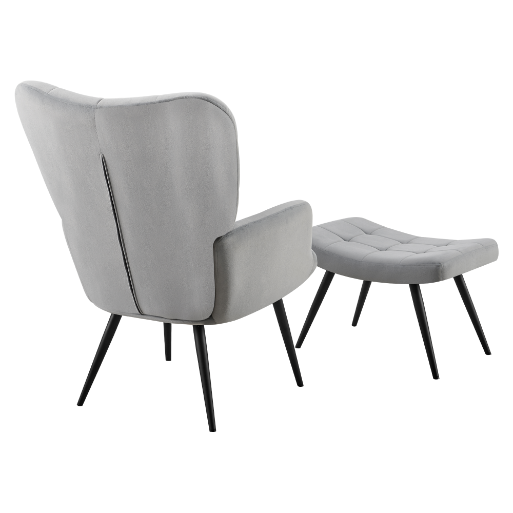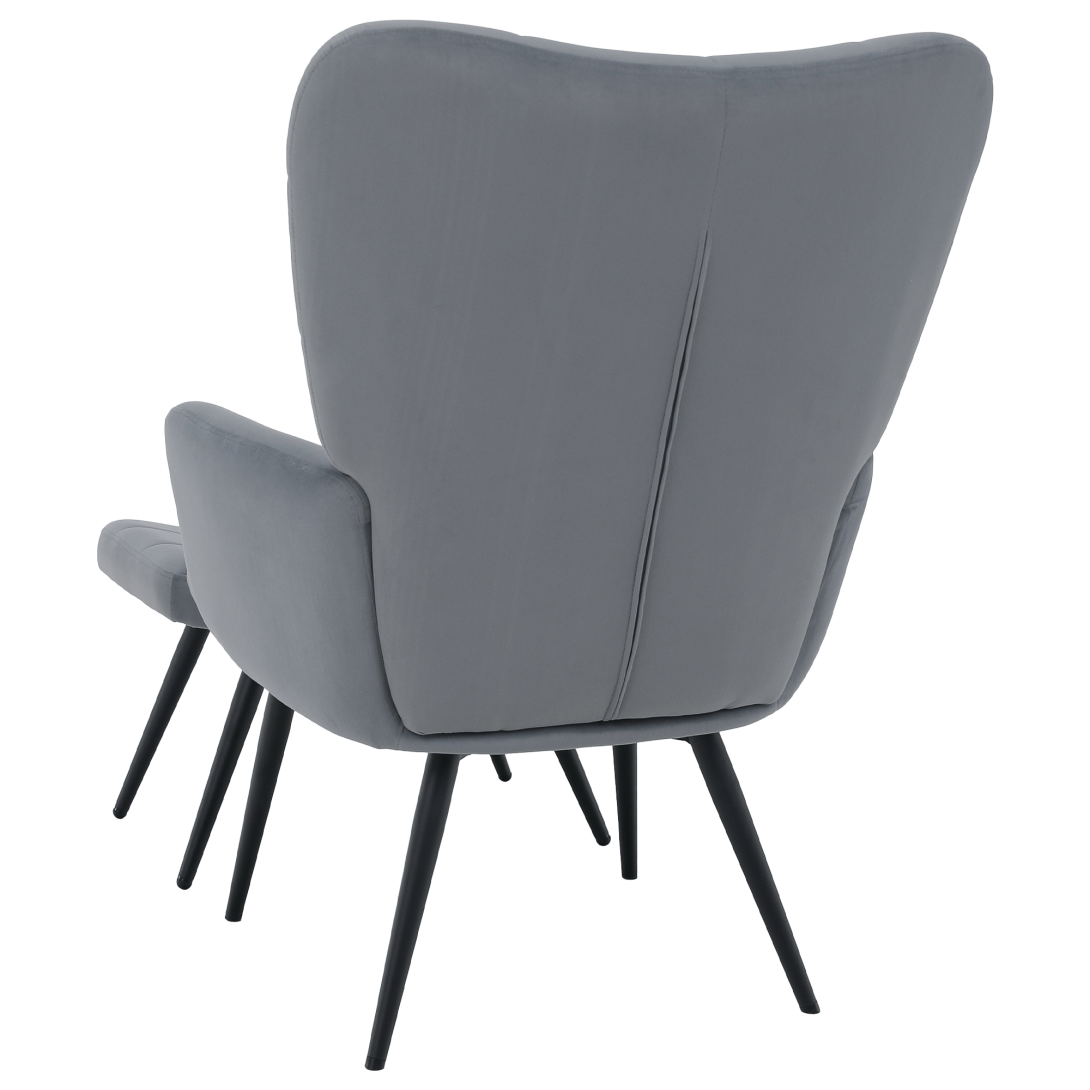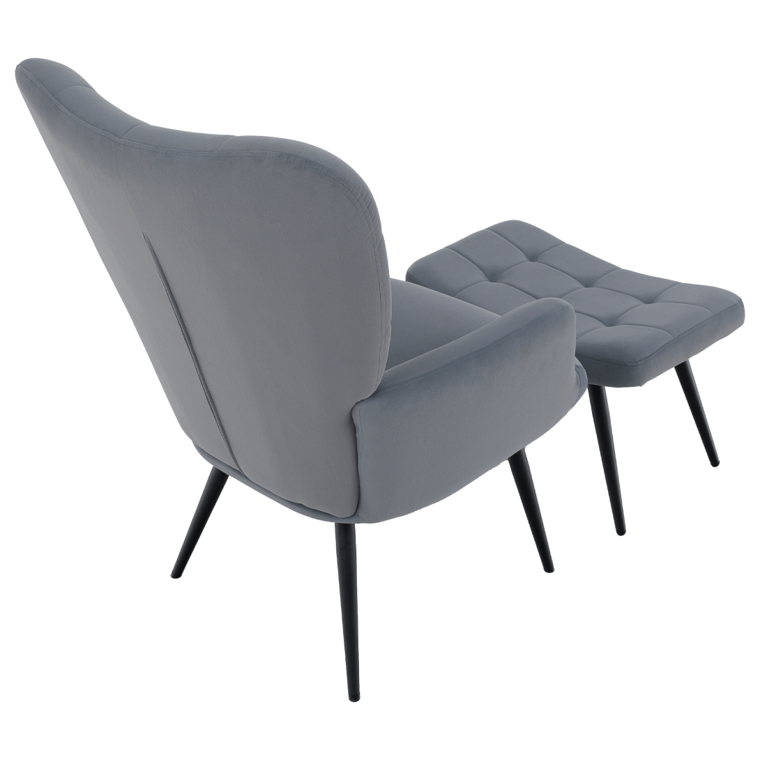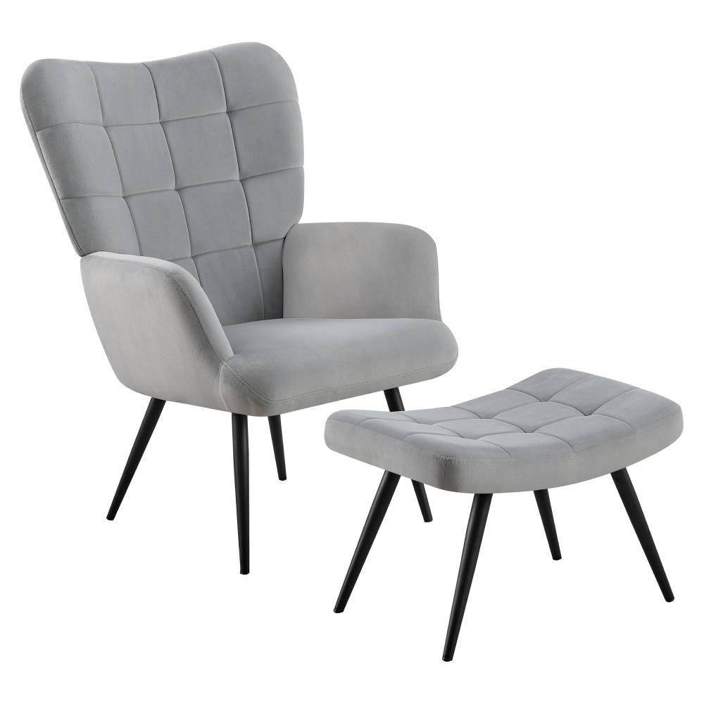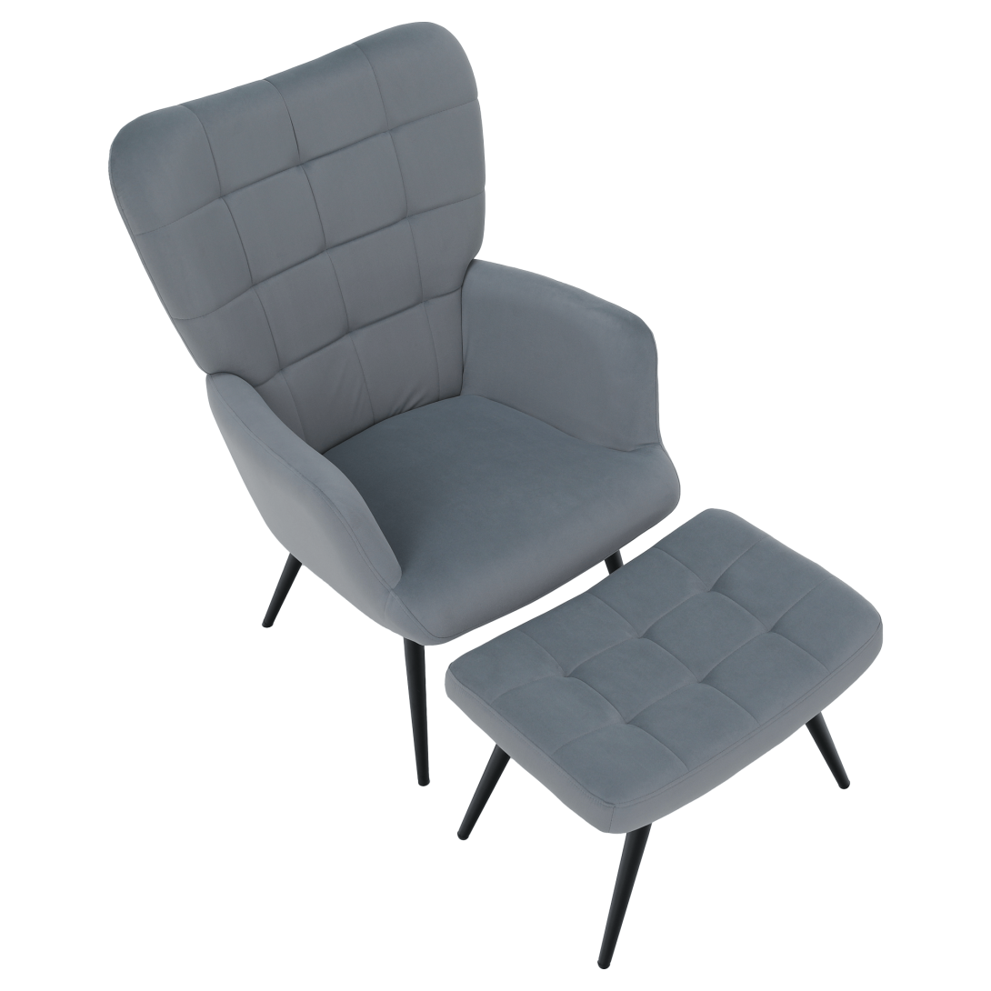 KONDELA Kreslo s podnožou, sivá Velvet látka/čierna, HABEN