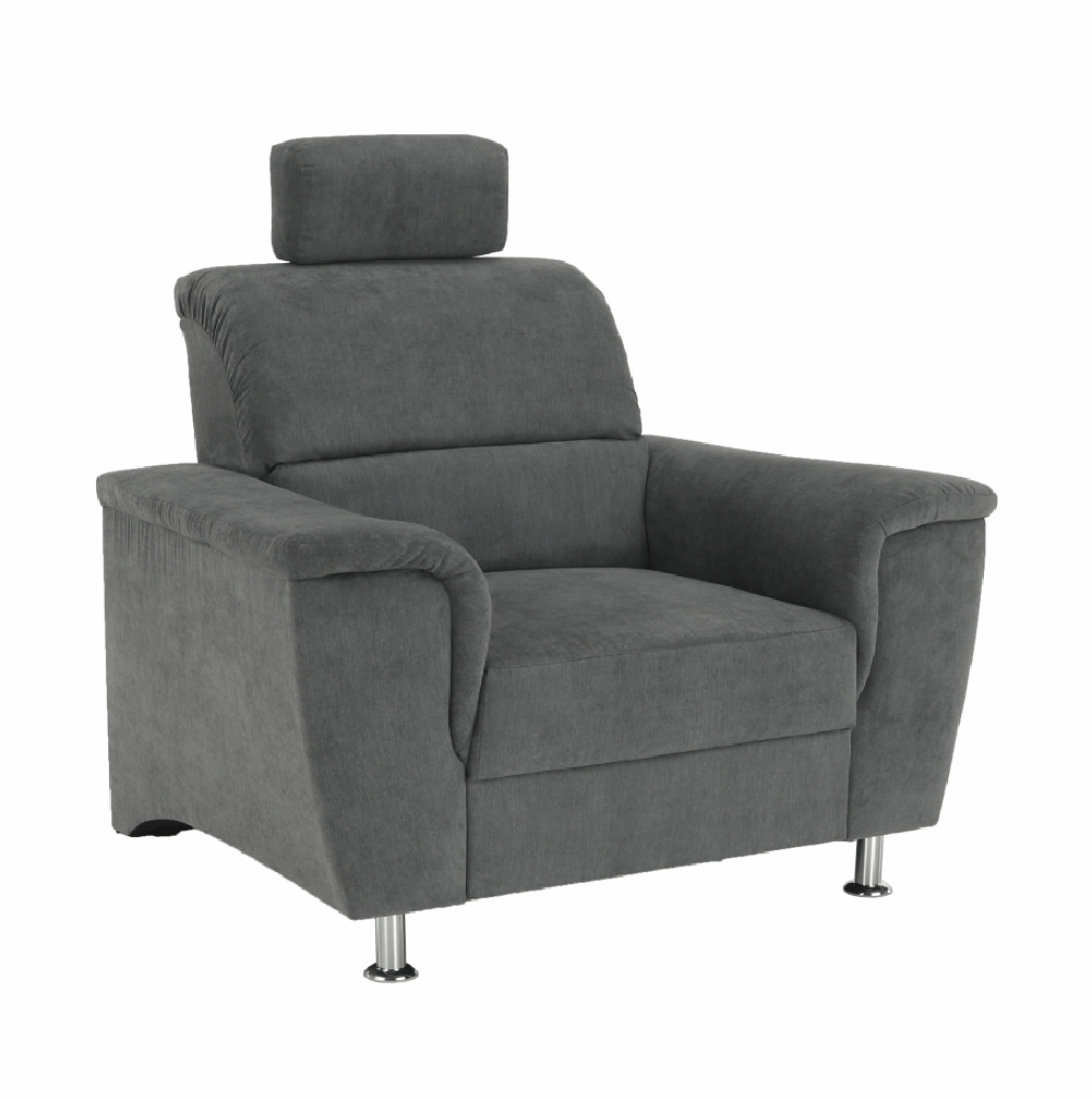 Kreslo SANTIAGO s polohovacou opierkou hlavy Materiál: látka Oderuodolnosť textílie podľa testu Martindale: 72 000 oderov Farebné prevedenie: Matrix 17 sivá Kovové nožičky s povrchovou úpravou chróm Rozmery (ŠxHxV):112x92x114 cm Výška sedu: 41cm Hĺbka sedu: 53 cm Výška spodného priestoru od podlahy: 10 cm Nosnosť na osobu: 90 kg Možnosť objednania v 6 farebných prevedeniach látky Matrix v cene: roh - 1.109 Eur, kreslo - 335 Eur, taburet - 115 Eur. Pri individuálnej objednávke je potrebné zaplatiť 10% zálohu z danej sumy. Po uhradení zálohy bude Vaša požiadavka zadaná do výroby. Doba dodania 6-8 týždňov. Váš výber poznačte do poznámky v objednávke.