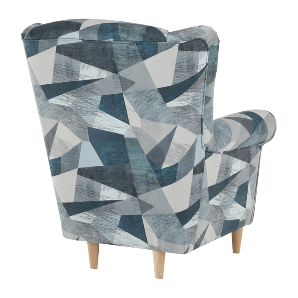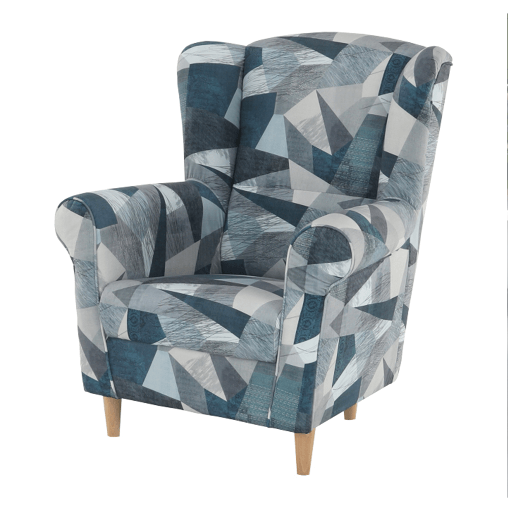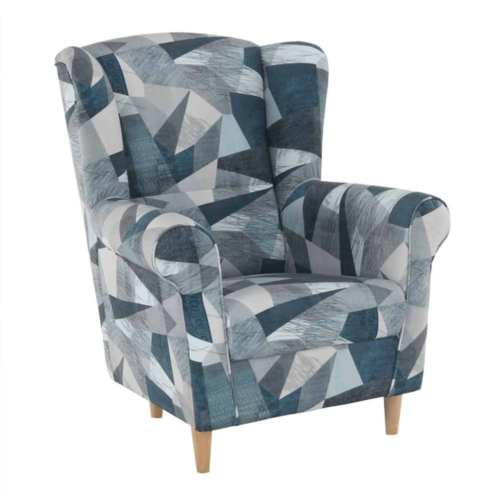 KONDELA Kreslo ušiak, látka sivo-modrý vzor, CHARLOT