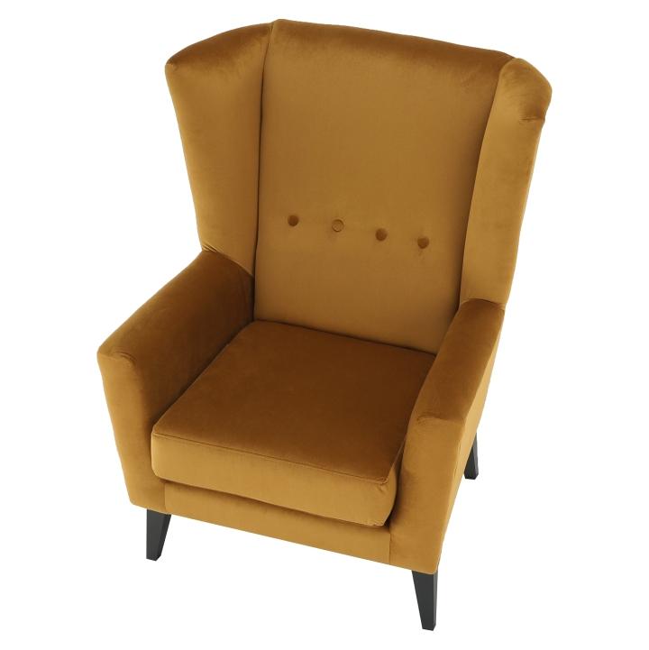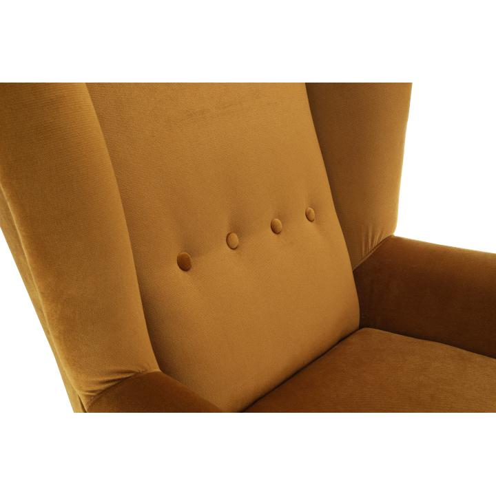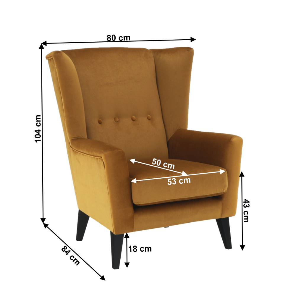Materiál: látka Kronos 01/drevoOderuodolnosť textílie podľa testu Martindale: 60 000 oderovFarba: medená/čiernaRozmery kresla (ŠxHxV): 80x84x104 cmNosnosť na osobu: 90 kgVýška sedu: 43 cmHĺbka sedu: 50 cmŠírka sedu: 53 cmVýška spodného priestoru od podlahy: 18 cmNosnosť: 120 kgVysoké operadloOzdobné gombíkyDodávané v demonte