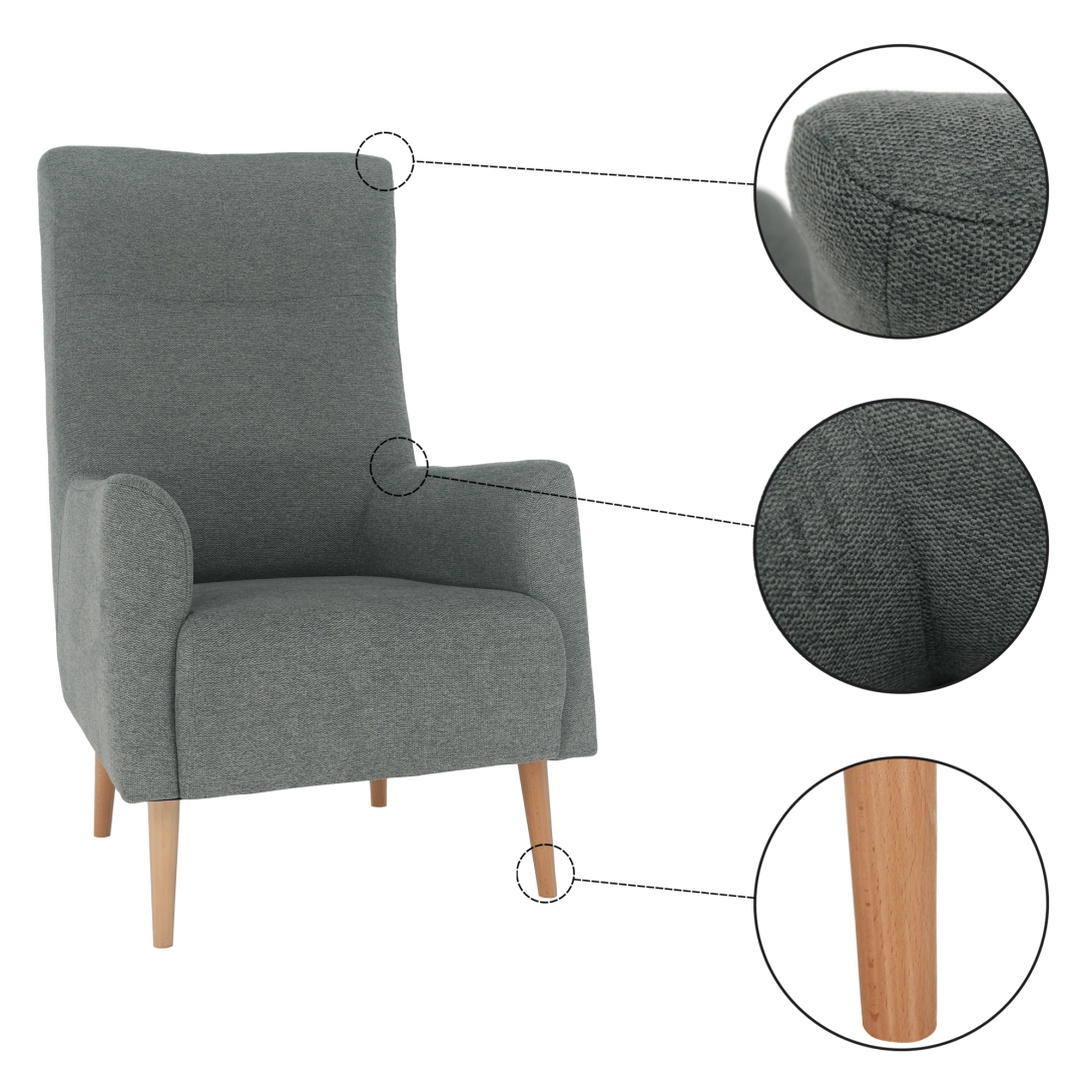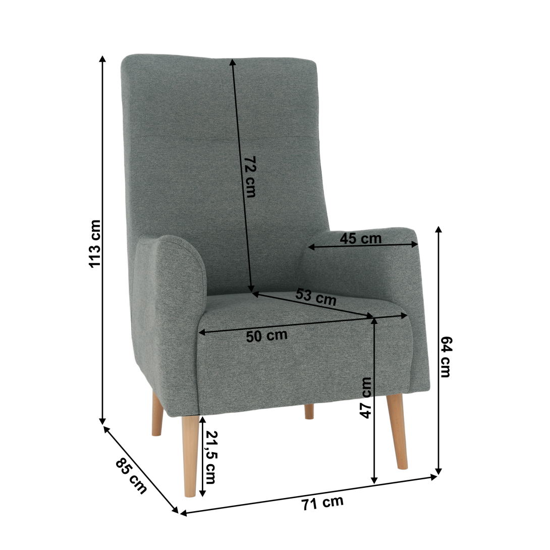 Materiál: látka Matana 10/drevo Oderuodolnosť textílie podľa testu Martindale: 57 000 oderovFarba: mentolová/bukRozmery kresla (ŠxHxV): 71x85x113 cm Výška spodného priestoru od podlahy: 21,5 cm Výška sedu: 47 cm Hĺbka sedu: 53 cm Šírka sedu: 50 cm Výška od zeme po opierku na ruky: 64 cmVýška opierky chrbta: 72 cm Hĺbka opierky na ruku: 45 cm Nosnosť: 120 kg CeločalúnenéVysoké operadlo Dodávané v demonte Kreslo si môžete objednať aj v inej farbe. Na výber máte štyri odtiene látky Matana. Odtiene nájdete v priloženom vzorkovníku. Výber farebného odtieňa poznačte pri objednávaní priamo do poznámky. Pri individuálnej objednávke je potrebné zaplatiť 10% zálohu z danej sumy. Po uhradení zálohy bude Vaša požiadavka zadaná do výroby. Dodacia doba 6-8 týždňov.