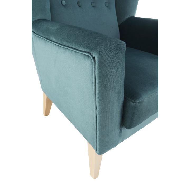 Materiál: látka Kronos 25/drevoOderuodolnosť textílie podľa testu Martindale: 60 000 oderovFarba: mentolová/bukRozmery kresla (ŠxHxV): 80x84x104 cmVýška sedu: 43 cmHĺbka sedu: 50 cmŠírka sedu: 53 cmVýška spodného priestoru od podlahy: 18 cmNosnosť: 120 kgVysoké operadloOzdobné gombíkyDodávané v demonte
