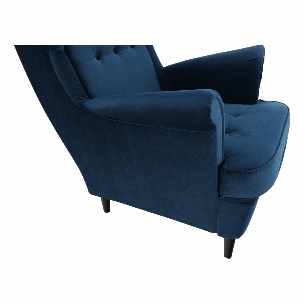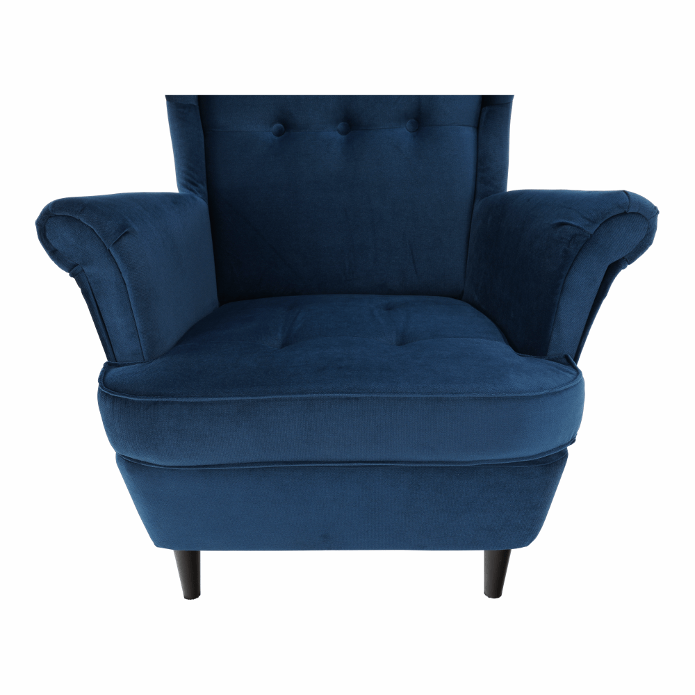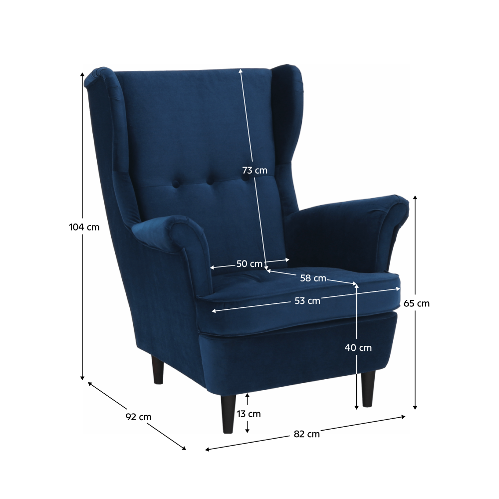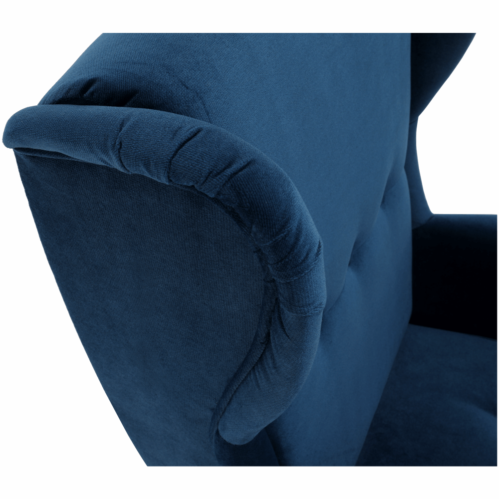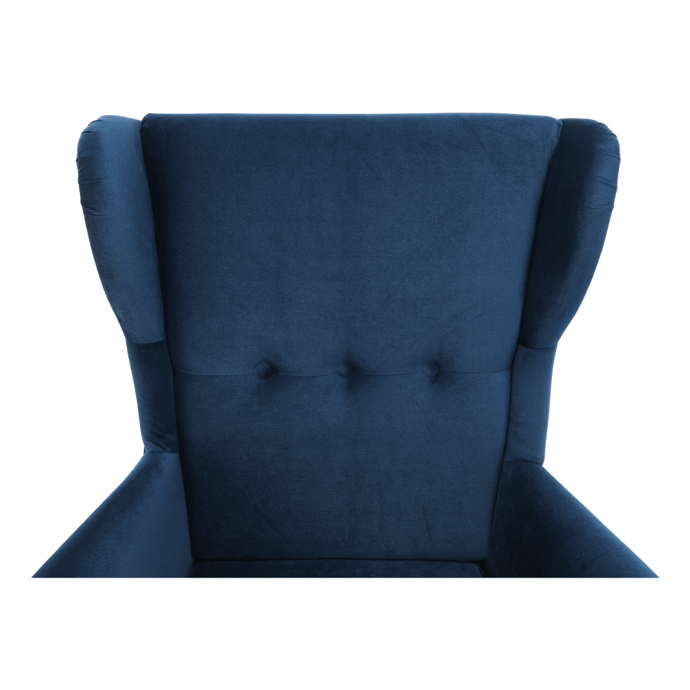 Materiál čalúnenie: látka Kronos 9Oderuodolnosť textílie podľa testu Martindale: 60 000 oderovFarba čalúnenie: modrá Materiál nohy: drevoFarba nohy: orechRozmery kresla (ŠxHxV): 82x92x104 cmVýška sedu: 40 cmHĺbka sedu: 58 cmVýška spodného priestoru od podlahy: 13 cmŠírka sedacej časti: 53 cmVýška chrbtovej opierky: 73 cmVýška od zeme po opierku: 65 cmNosnosť: 120 kgDrevené nožičkyFarba nožičiek sa môže líšiťDodávané v demonte