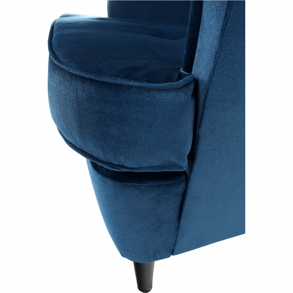 KONDELA Kreslo ušiak, modrá/orech, RUFINO 3 NEW