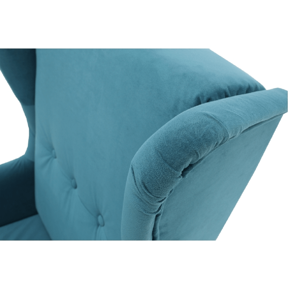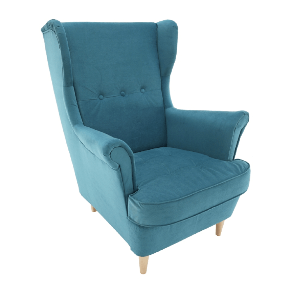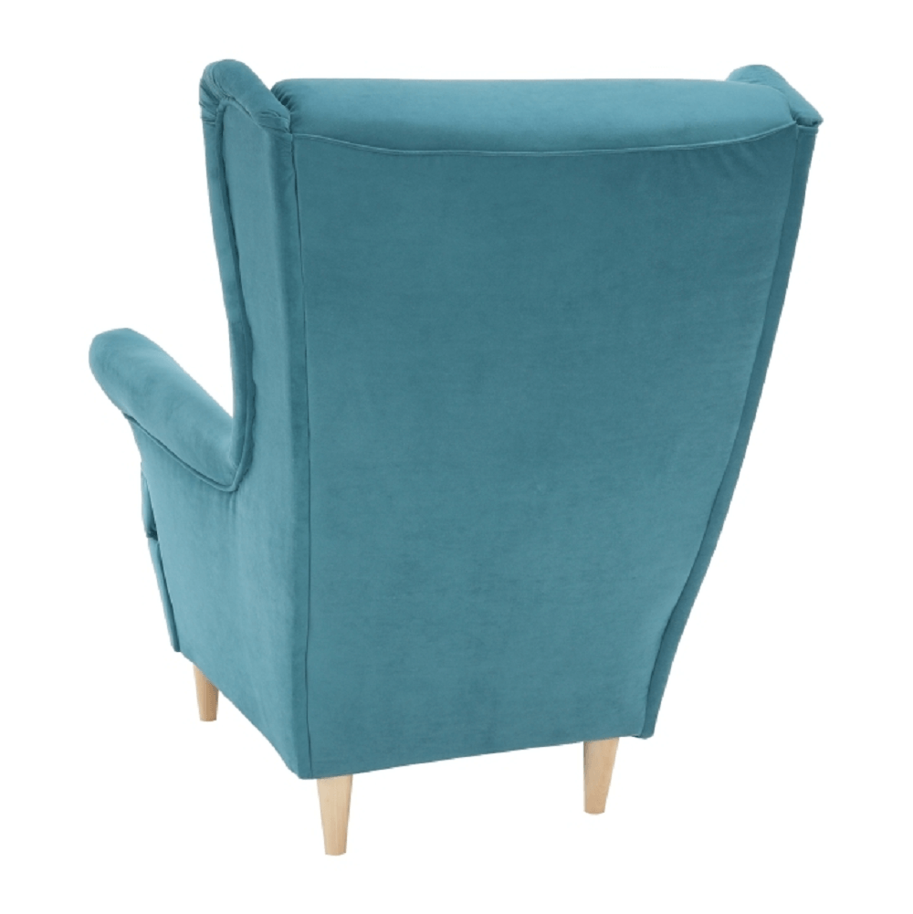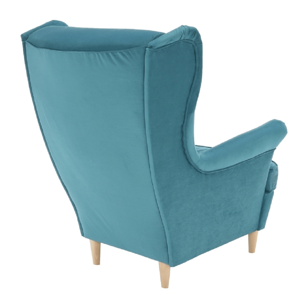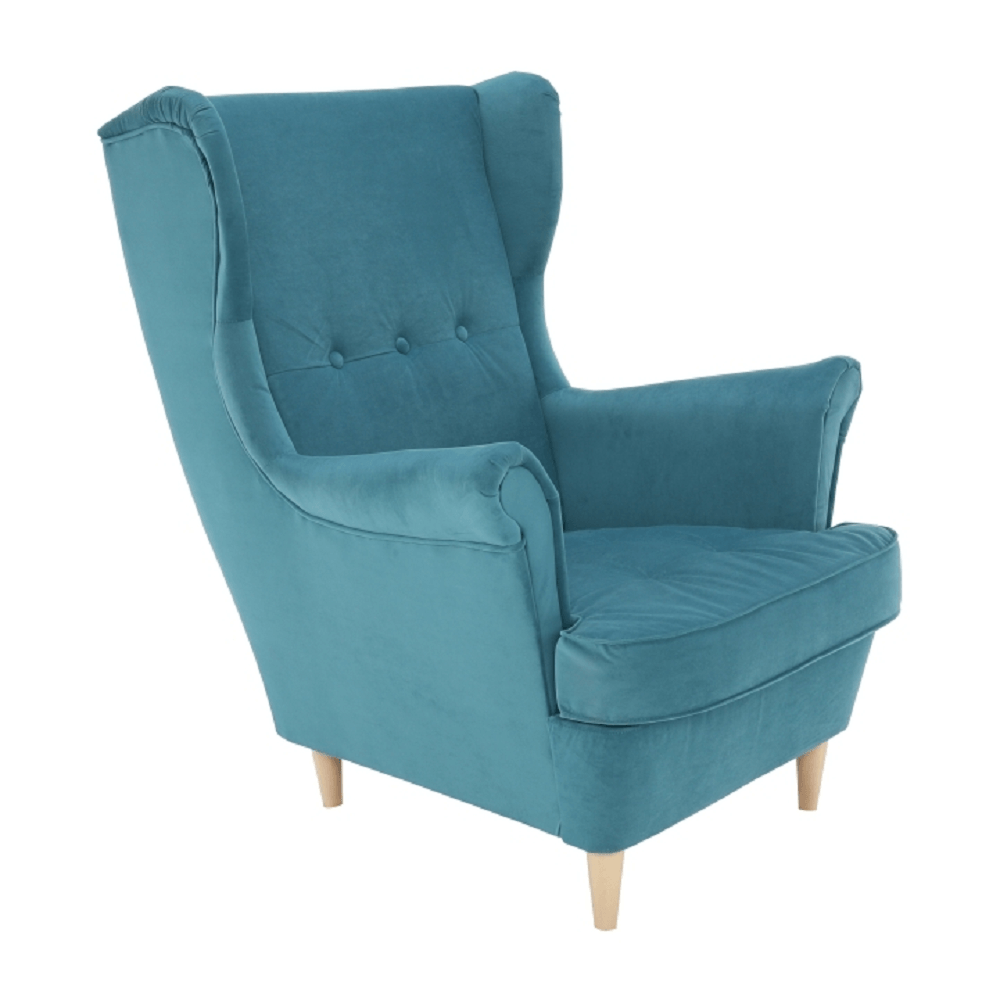 KONDELA Kreslo ušiak, petrolejová/buk, RUFINO 3 NEW