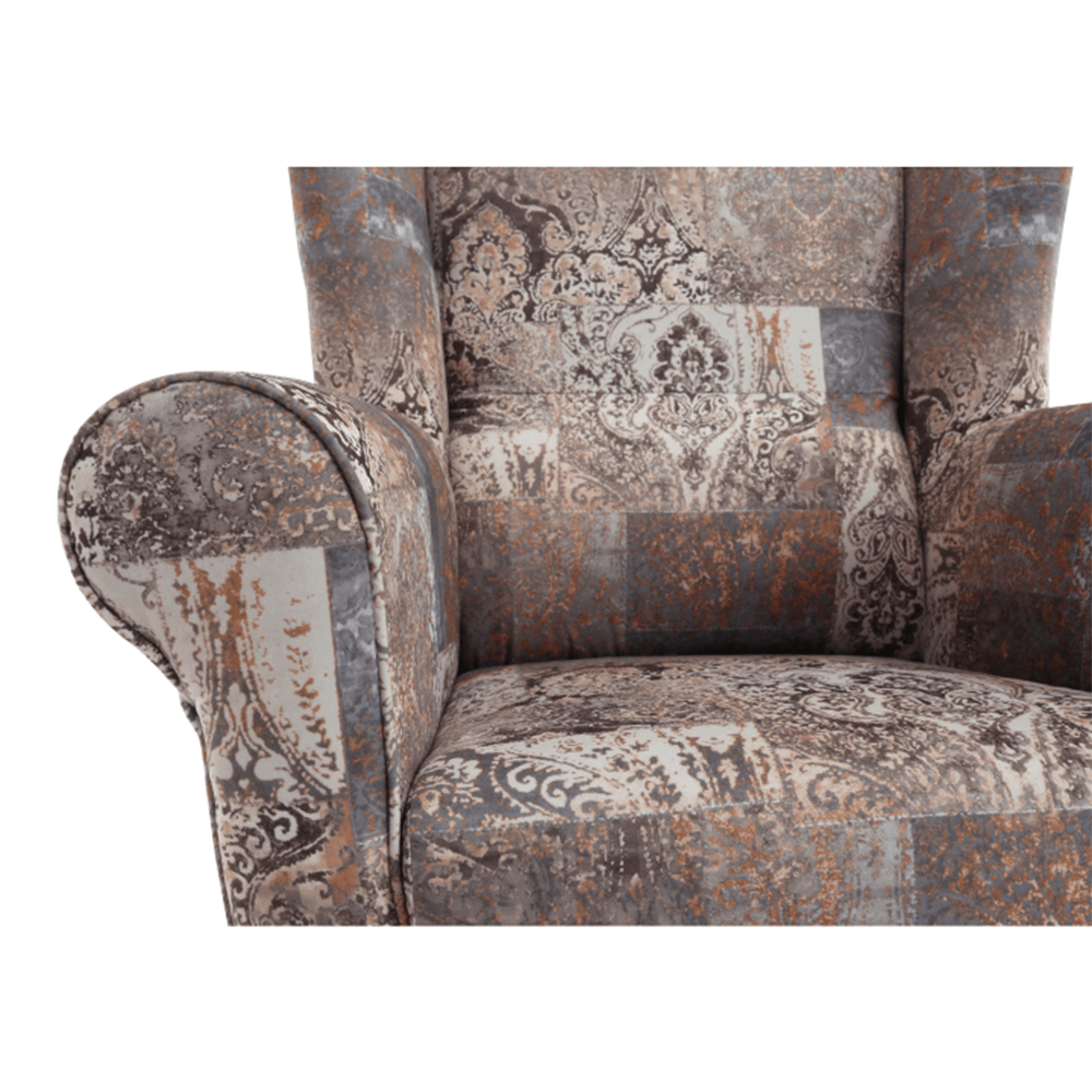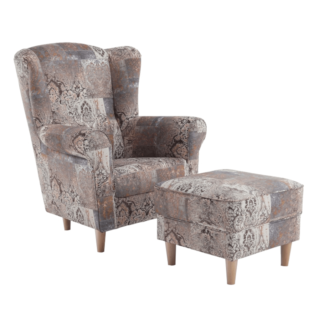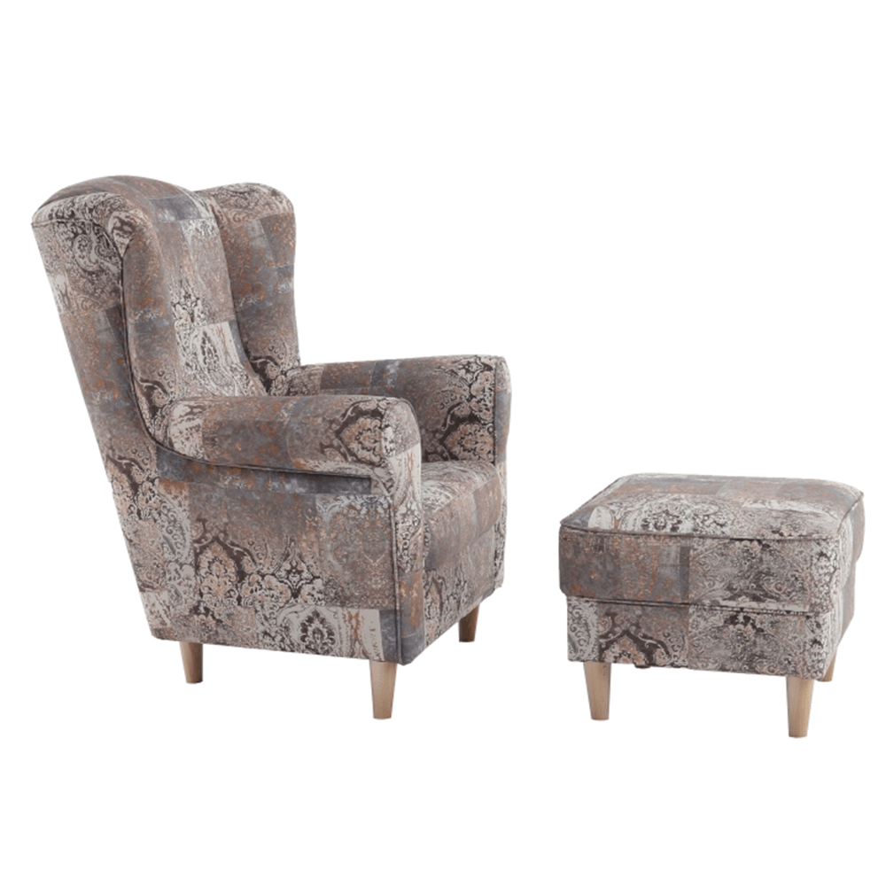 KONDELA Kreslo ušiak s taburetom, látka vintage vzor, ASTRID
