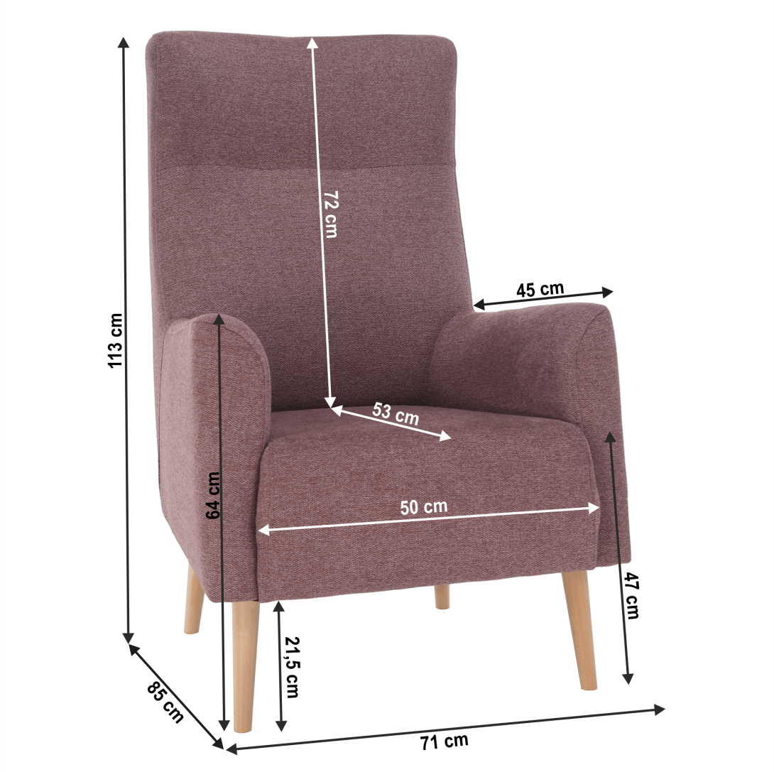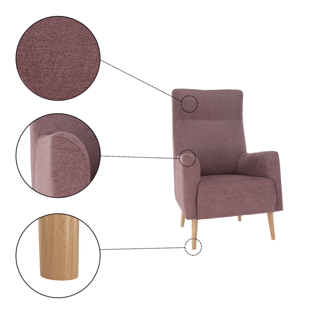 Materiál: látka Matana 14/drevo Oderuodolnosť textílie podľa testu Martindale: 57 000 oderovFarba: staroružová/bukRozmery kresla (ŠxHxV): 71x85x113 cm Výška spodného priestoru od podlahy: 21,5 cm Výška sedu: 47 cm Hĺbka sedu: 53 cm Šírka sedu: 50 cm Výška od zeme po opierku na ruky: 64 cmVýška opierky chrbta: 72 cmHĺbka opierky na ruku: 45 cm Nosnosť: 120 kg CeločalúnenéVysoké operadlo Dodávané v demonte Kreslo si môžete objednať aj v inej farbe. Na výber máte štyri odtiene látky Matana. Odtiene nájdete v priloženom vzorkovníku. Výber farebného odtieňa poznačte pri objednávaní priamo do poznámky. Pri individuálnej objednávke je potrebné zaplatiť 10% zálohu z danej sumy. Po uhradení zálohy bude Vaša požiadavka zadaná do výroby. Dodacia doba 6-8 týždňov.