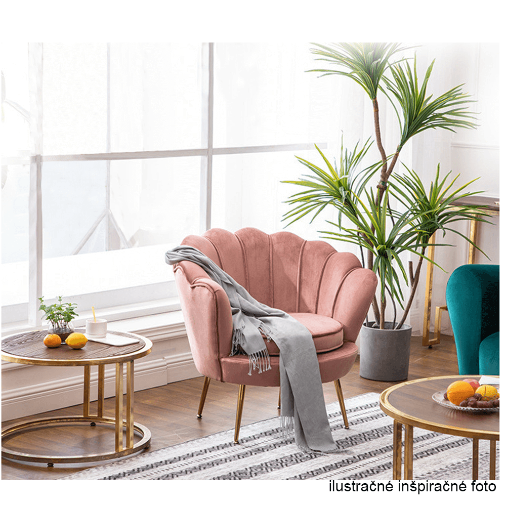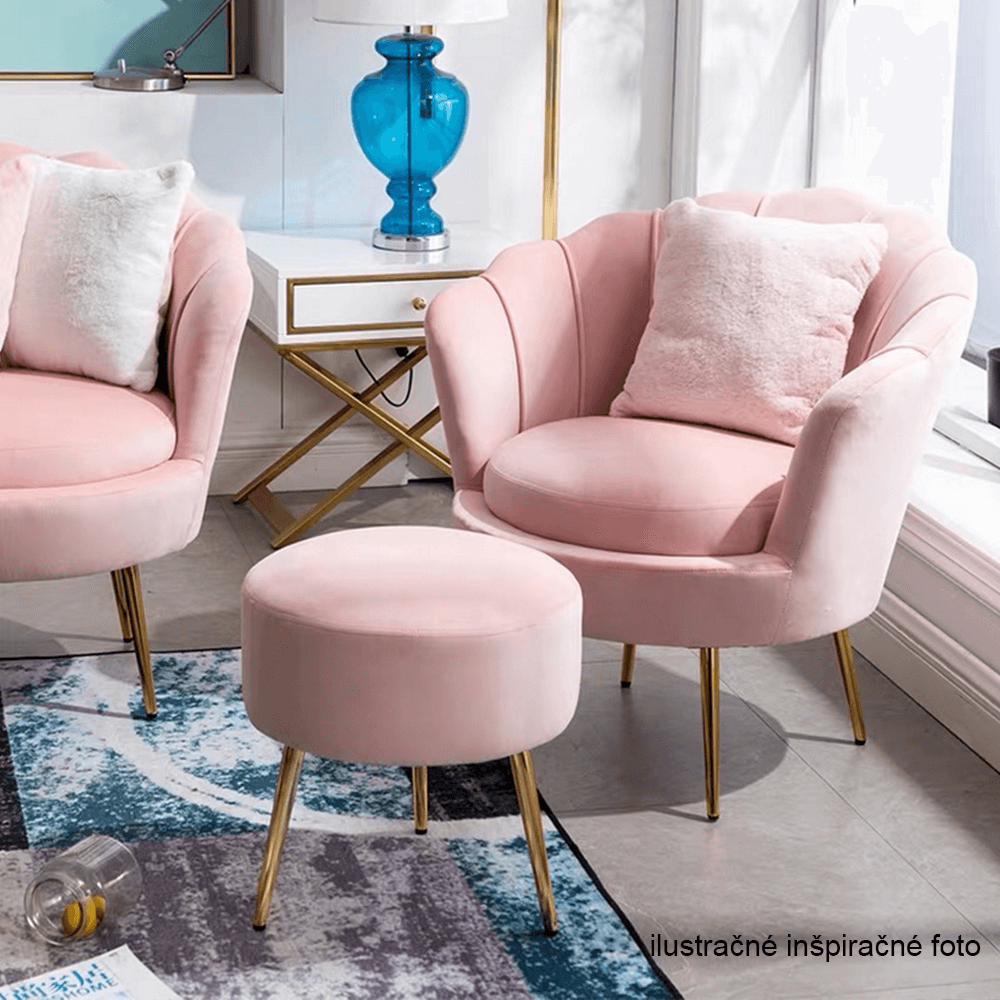 Materiál sedadlo: látka VelvetOderuodolnosť textílie podľa testu Martindale: 80 000 oderovFarba: ružová 23Materiál nohy: kovFarba: gold chróm-zlatýRozmery (ŠxHxV): 77x76x77 cmVýška sedu: 46 cmHĺbka sedu: 58 cmNosnosť: 90 kgNohy zakončené ohybnými klzákmi na vyrovnanie nerovnosti povrchuDizajnovéV štýle Art-decoV tvare mušleModerne spracovanéDodávané v demonte