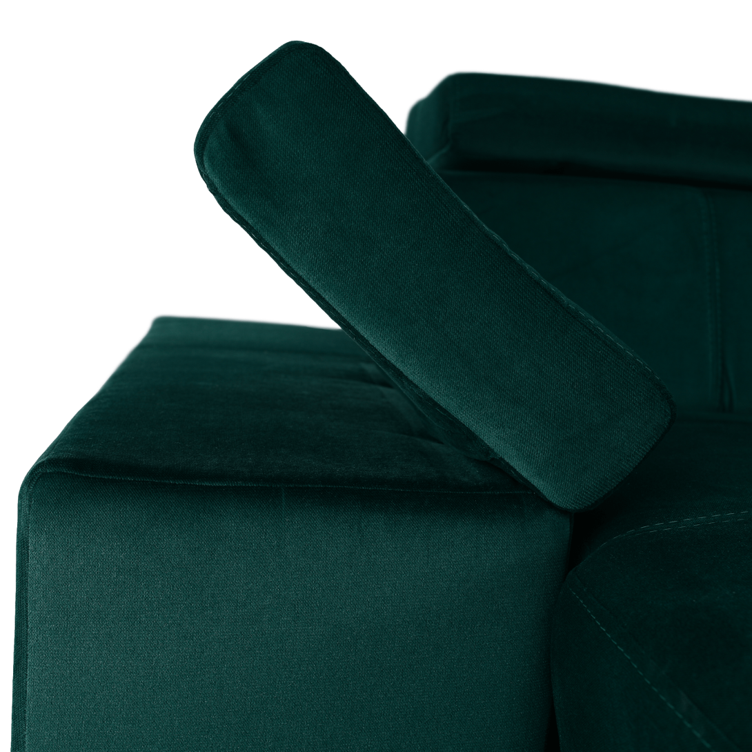 Materiál: látka KRONOSOderuodolnosť textílie podľa testu Martindale: 60 000 oderovFarba: smaragdová 19Rozmery: (ŠxHxV): 329x181/220x79/97 cm Rozmery plochy na spanie (ŠxD): 256x129 cmHĺbka sedu: 57 cmVýška sedu: 41 cmVýška spodného priestoru od podlahy: 4,5 cmŠírka voľného priestoru medzi otomanmi: 133 cm6 polohovacie opierky hlavy5 stupňové polohovanie opierok1 polohovacia opierka rukyS úložným priestoromCeločalúnenáExkluzívny a moderný vzhľadĽavé prevedenieVýplň sedenia: pružiny falista a pur pena T30KG/m3, hrúbka peny 10 cmVýplň opierky: elastické pásy a pur pena T25/m3, hrúbka peny 7 cmDekoratívne vankúše nie sú súčasťou baleniaDodávané v demonteMožnosť objednania v 6 farebných prevedeniach látky Kronos za cenu 1.339 Eur. Pri individuálnej objednávke je potrebné zaplatiť 10% zálohu z danej sumy. Po uhradení zálohy bude Vaša požiadavka zadaná do výroby. Doba dodania 6-8 týždňov.