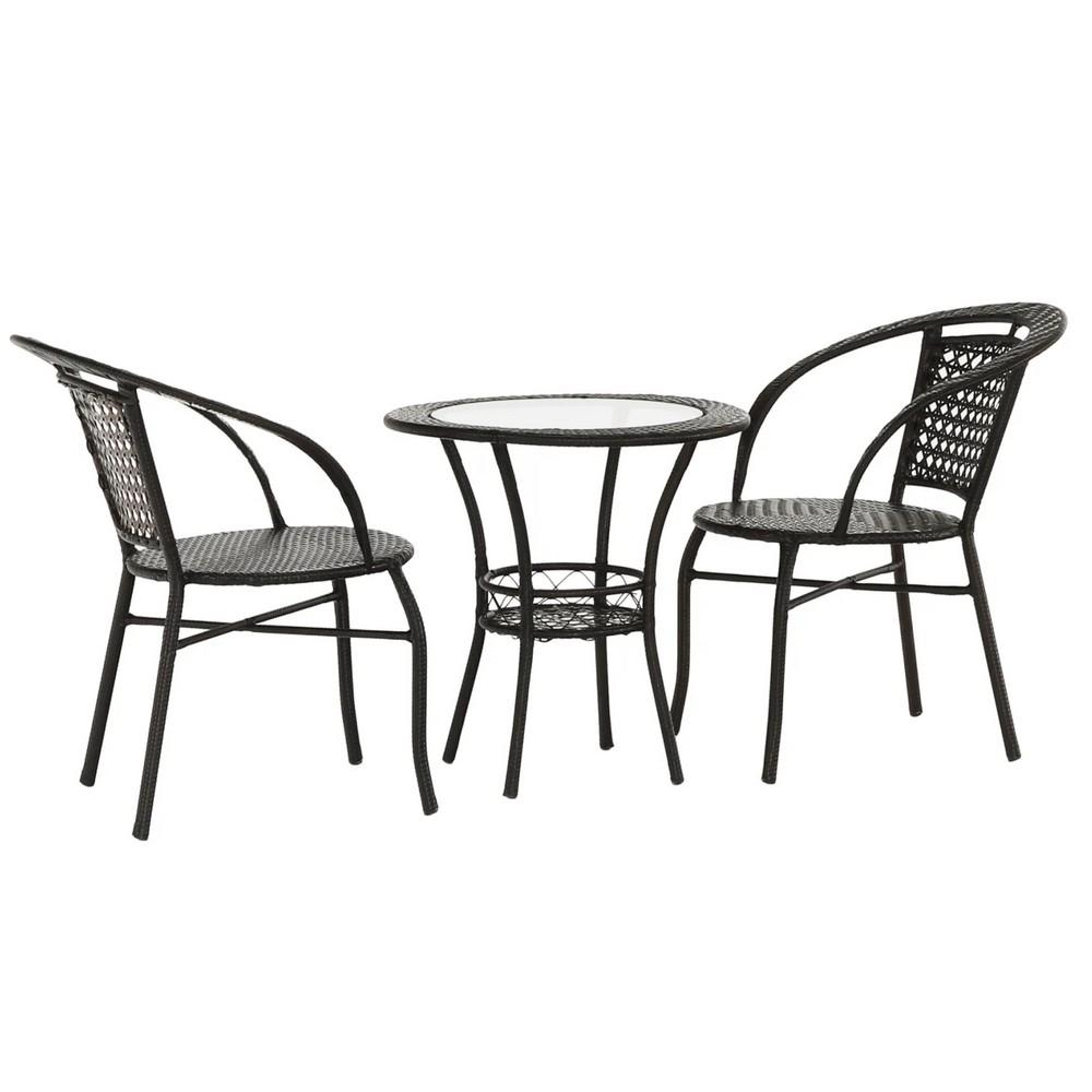 Záhradný ratanový set 1+2, Stôl (priemer x V): 60x60 cm, Kreslo (ŠxHxV): 65x62x77 cm, Materiál: umelý ratan/oceľ/tvrdené sklo