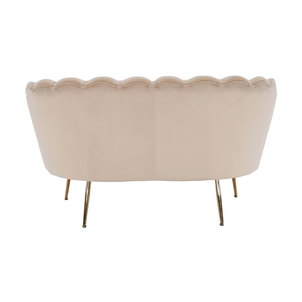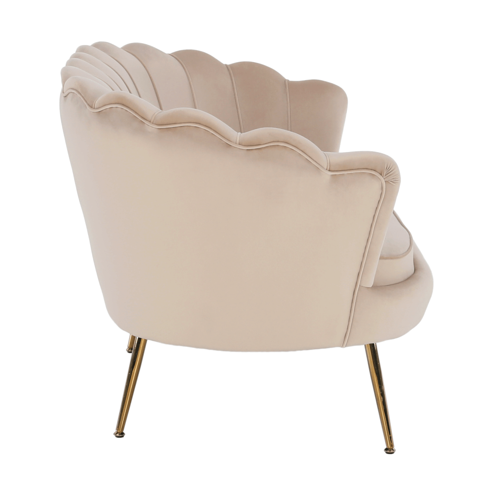Materiál sedadlo: látka VelvetOderuodolnosť textílie podľa testu Martindale: 80 000 oderovFarba: béžová 4Materiál nohy: kovFarba: gold chróm-zlatýRozmery (ŠxHxV): 135x75x78 cmVýška sedu: 43 cmHĺbka sedu: 58 cmNosnosť: 180 kgNohy zakončené ohybnými klzákmi na vyrovnanie nerovnosti povrchuDizajnováV štýle Art-decoV tvare mušleModerne spracovanáDodávané v demonte