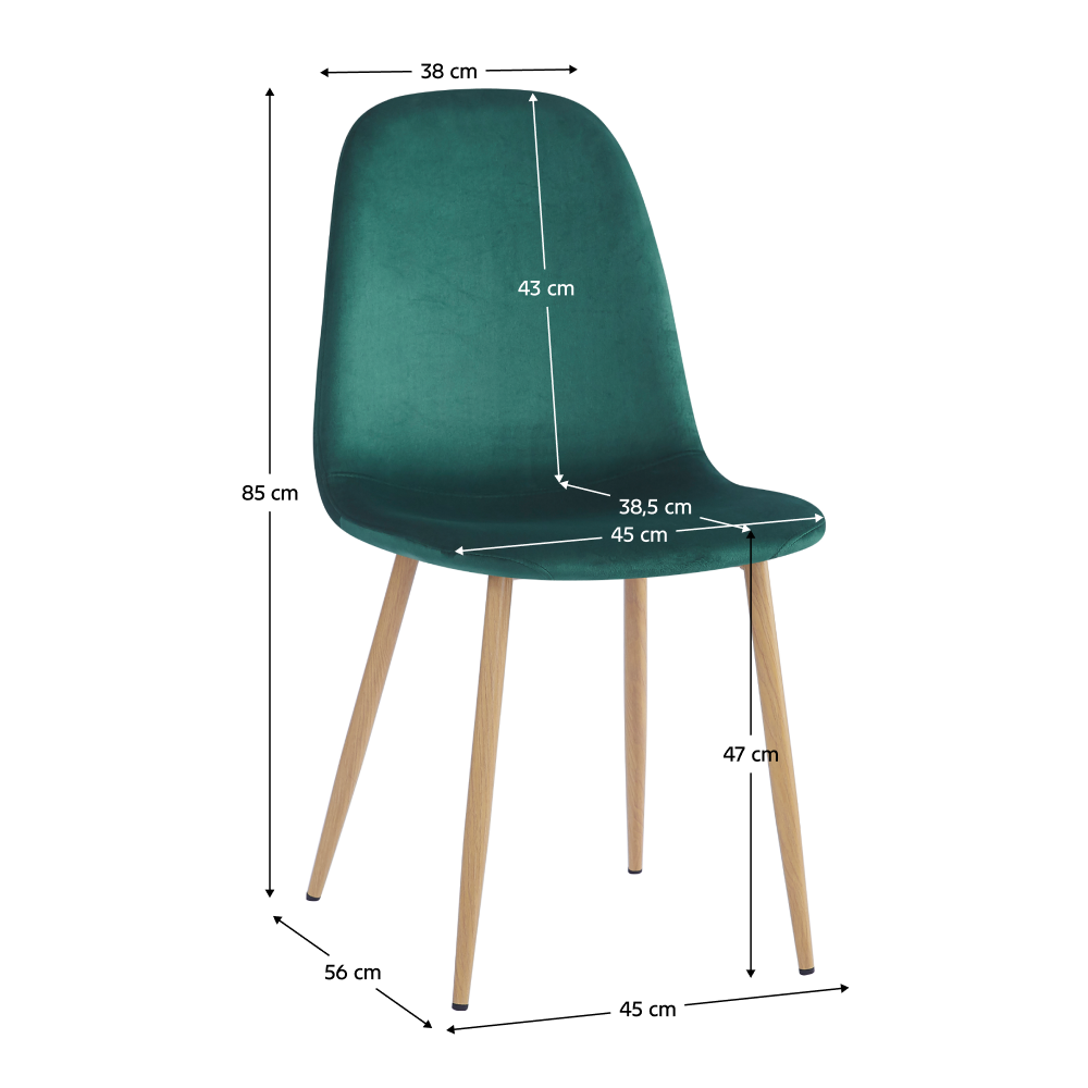 Materiál: látka/kovOderuodolnosť textílie Velvet podľa testu Martindale: 85 000 oderovOderuodolnosť textílie podľa testu Martindale: 68 000 oderovFarba: smaragdová/bukRozmery (ŠxHxV): 45x56x85 cmVýška sedu: 47 cmHĺbka sedu: 38,5 cmŠírka sedu: 45 cmVýška chrbta: 43 cmŠírka chrbta: 38 cmNosnosť: 110 kgDodávané v demonte