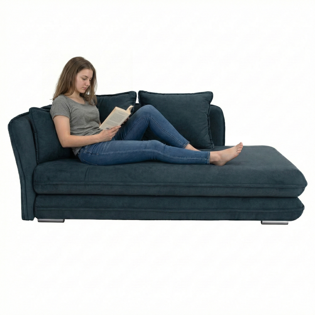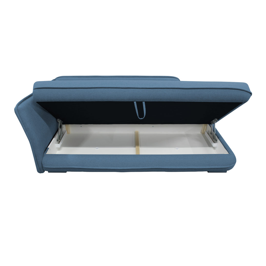 KONDELA Leňoška s úložným priestorom, modrá, ľavá, LAMBA
