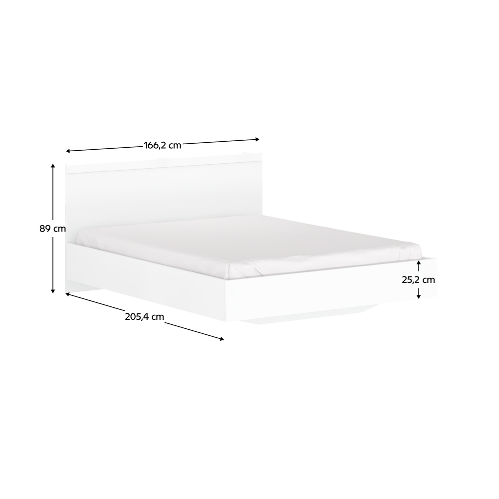 Materiál: laminovaná DTDFarba: bielaRozmery (ŠxHxV): 166,2x205,4x89 cmPlocha na spanie: 160x200 cmHrúbka materiálu: 1,6 cmABS hranyModerný dizajnElegantná posteľDodávané bez roštuOdporúčame zakúpiť matrac s lamelovým roštom s minimálnou výškou 16 cmDodávané bez matracaDodávané v demonte