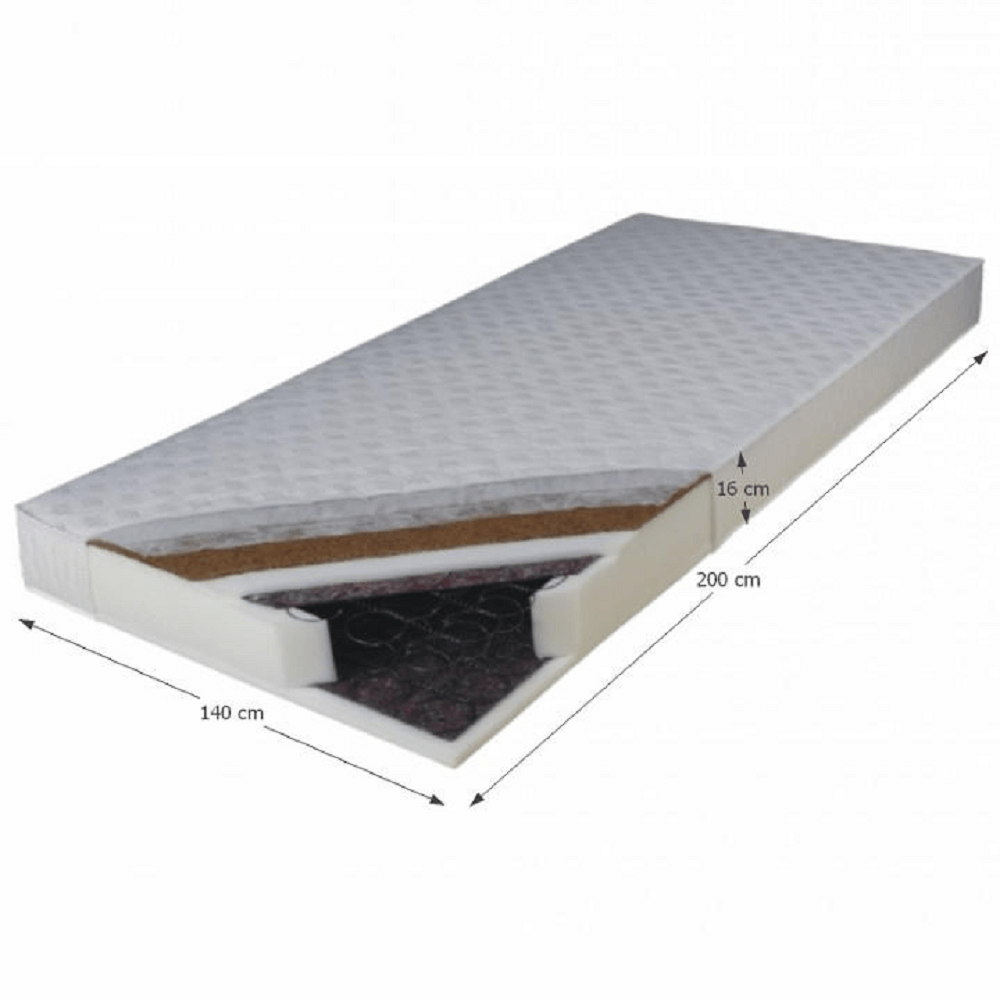 Matrac obojstranný KOKOS MEDIUM. Rozmery (ŠxD): 140x200cm Výška matraca: 16 cm Materiál: bonelové pružiny / polyuretánová pena / latexová kokosová doska / bavlnený poťah Nosnosť: 100kg. Tvrdosť matraca: tvrdý T4 Hmotnosť: 12 kg