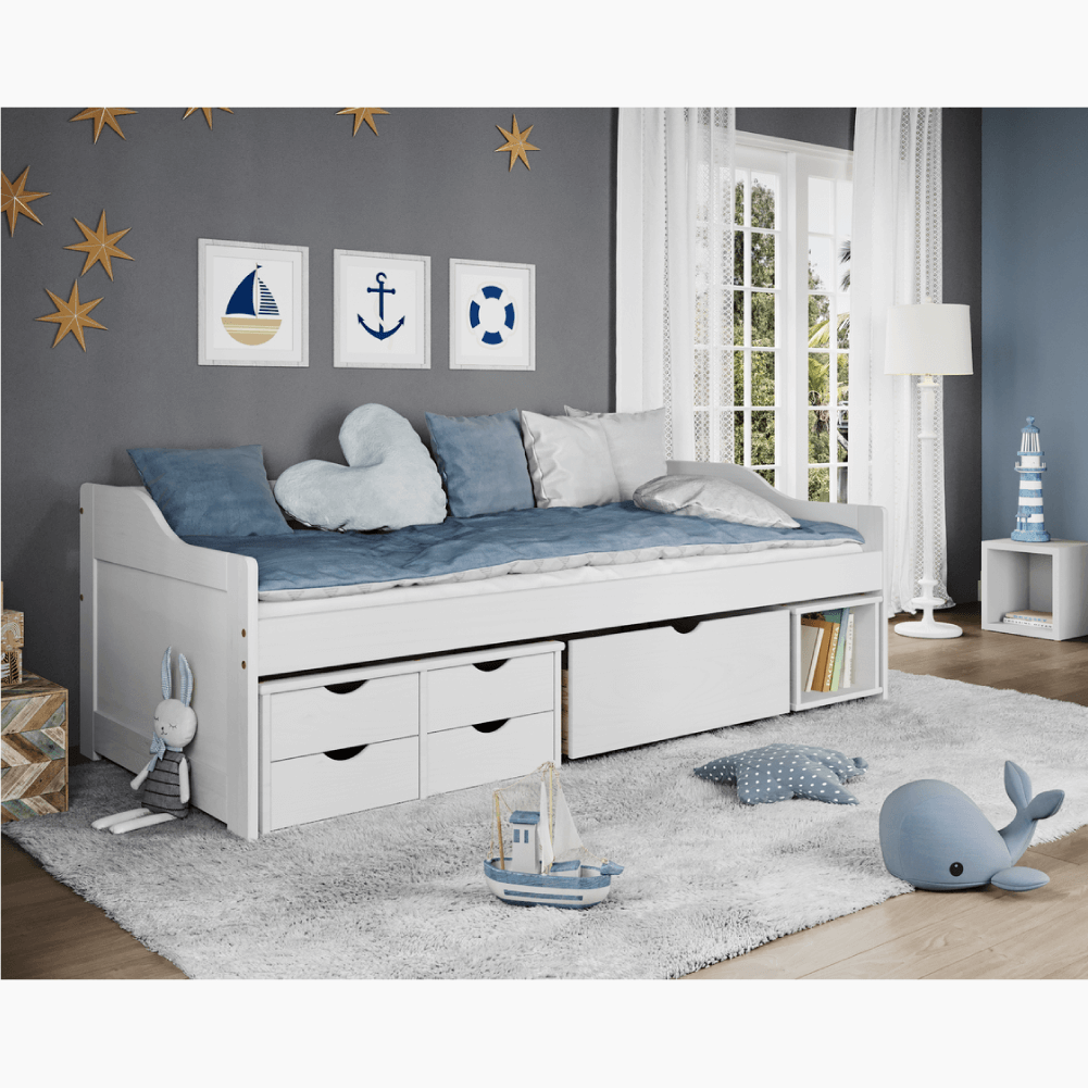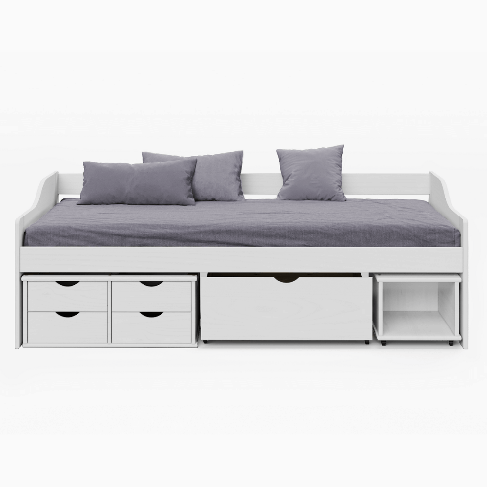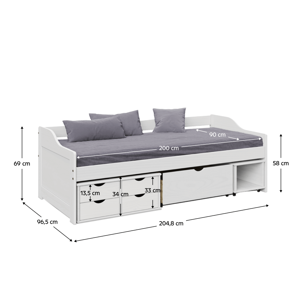 KONDELA MAXI NEW POSTEL S ULOZNYM PRIESTOROM, BIELA, MASIV, 90X200