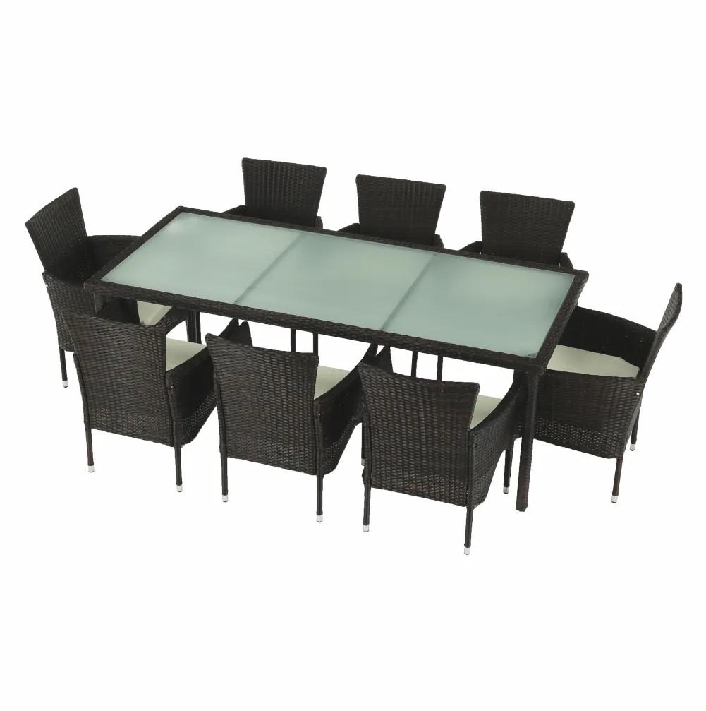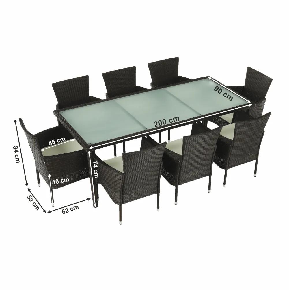Záhradný 9-dielny ratanový set, Stôl (ŠxHxV): 200x90x74 cm