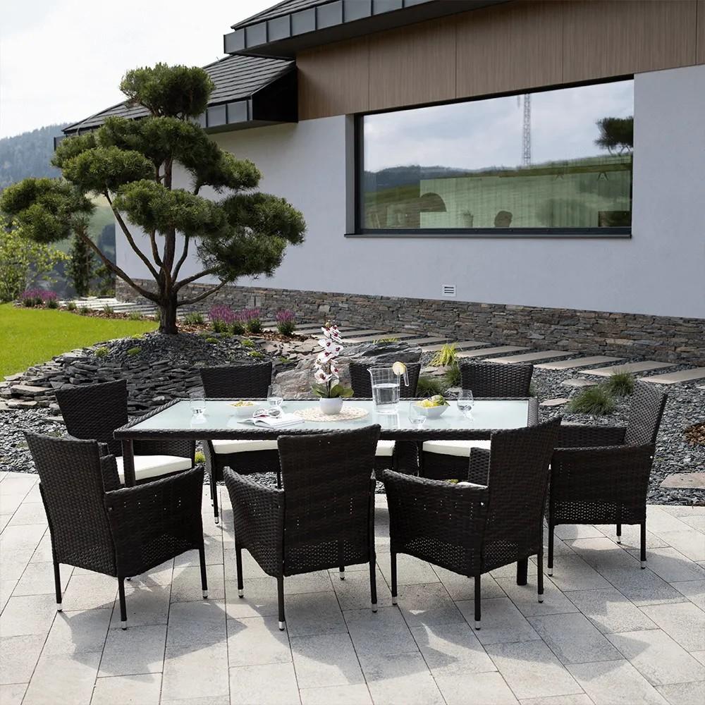 Záhrada je miesto, kde trávime svoj voľný čas a niektorí aj značnú časť svojej dovolenky. Záhrada je oáza pre záhradkárov, miesto, kde sa môžu realizovať záhradní architekti. Záhrada však nie je určená iba na prácu, ale aj na relax. Na kvalitný oddych potrebujeme aj kvalitný záhradný nábytok. Predstavujeme vám luxusný záhradný set MENIBOR. V sete nájdete 8 kresiel a jedálenský stôl. Každý kúsok vás zaujme pekným odtieňom hnedej farby. Celý set je vyrobený z umelého ratanu. Nosná konštrukcia je z pevnej ocele. Pohodlie kresiel zvyšujú vankúše v béžovej látke. Stoličky sú stohovateľné, čo oceníte predovšetkým na konci sezóny, keď príde čas na zazimovanie nábytku. Kreslá tak jednoducho premiestnite všade tam, kde pre ne na zimnú sezónu nájdete miesto. Stabilitu pohárom na stole zas zabezpečí tvrdené sklo. Spríjemnite si posedenie na teplom slniečku kvalitným setom v modernom dizajne.
