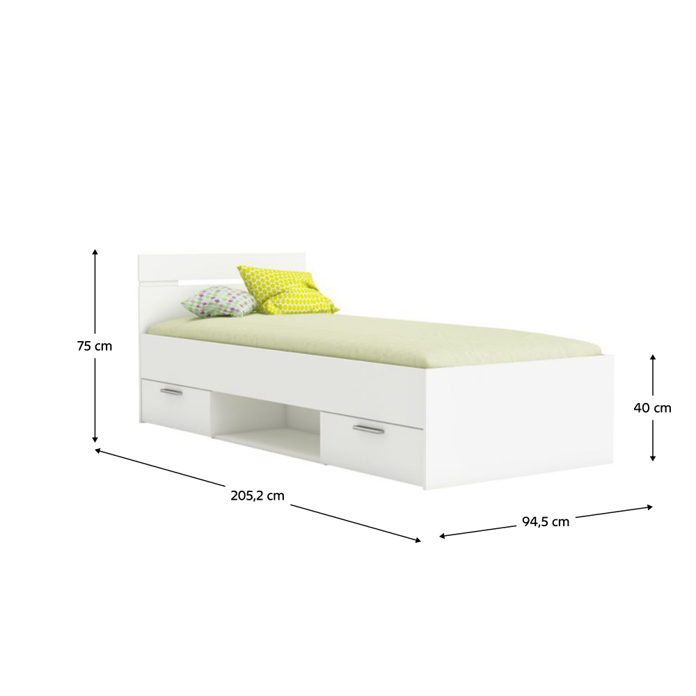 Posteľ MICHIGAN NEW so šuplíkmi a s odkladacím priestorom.Materiál: DTD laminovaná.Farebné prevedenie: bielaRozmery (ŠxHxV): 94,5x205,2x75 cm.Vnútorné rozmery šuplíka (ŠxHxV): 55,5x33,5x11 cmPlocha na spanie: 90x200 cmVýška spania: 40 cmVýška po rošt: 26 cmVýška matraca: 15 cm K posteli je možné zakúpiť rošt v pevnom ráme 90x200 a matrac s rozmerom 90x200 cm na základe našej ponuky.Nosnosť: 100 kg