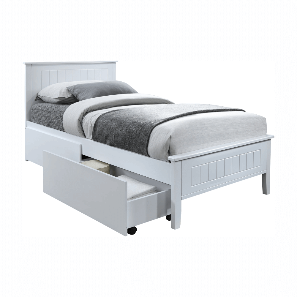 Materiál: masívne drevo/MDFFarba: bielaRozmery (ŠxHxV): 98,8x209,4x92,2 cmPlocha na spanie (ŠxH): 90x200 cmVýška po rošt: 31,5 cmNosnosť: 110 kgDodávané s latkovým roštomDodávané bez matracaMožnosť dokúpiť matrac z našej ponukyDodávané bez zásuvných kontajnerovMožnosť dokúpiť zásuvný kontajnerDodávané v demonte