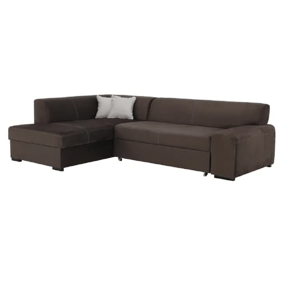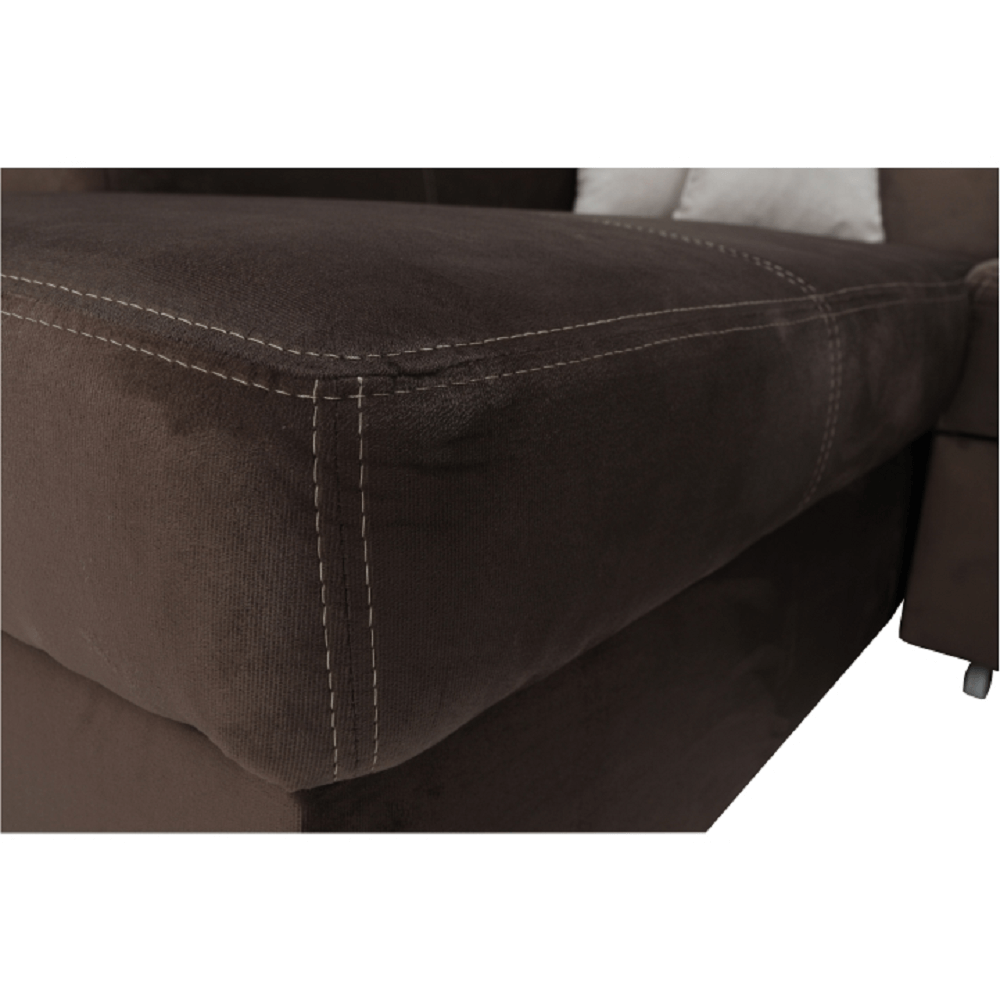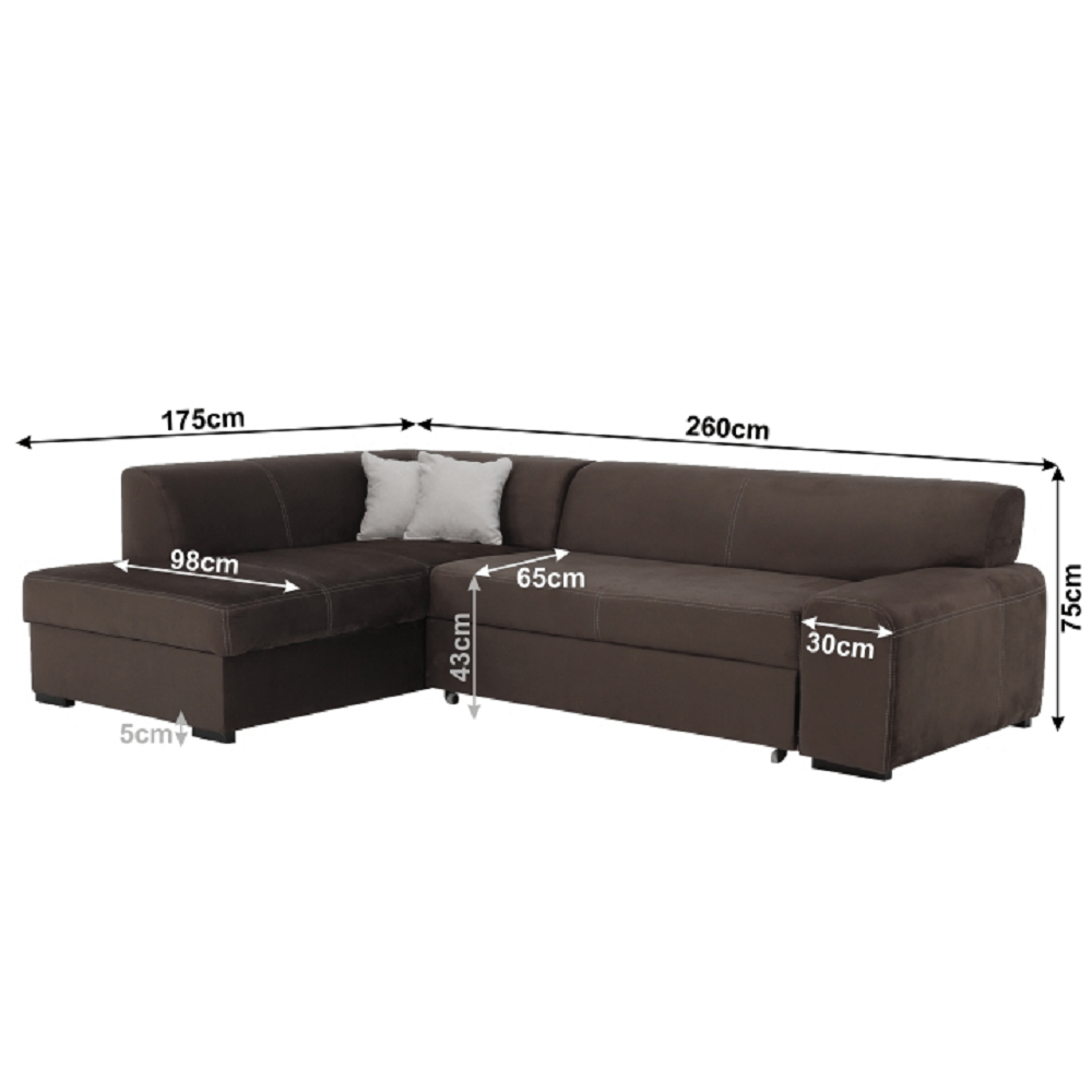 Celočalúnená rohová rozkladacia sedacia súprava s úložným priestorom, ľavá, MINERVA Materiál: látka Farba: hnedá Aria 05 Oderuodolnosť textílie podľa testu Martindale: 50 000 oderov Rozmery (ŠxHxV): 260x175x75 cm Plocha na spanie (ŠxD): 135x195 cm Výška sedu: 43 cm Hĺbka sedu: 65 cm Výška spodného priestoru od podlahy: 5 cm Nosnosť na osobu: 90 kg Dodávané v demonte. Možnosť objednania v 4 farebných odtieňoch ekokože a v 3 farebných odtieňoch látky Berlin v cene 699 Eur.Pri individuálnej objednávke je potrebné zaplatiť 10% zálohu z danej sumy. Po uhradení zálohy bude Vaša požiadavka zadaná do výroby. Dodacia lehota 6-8 týždňov.