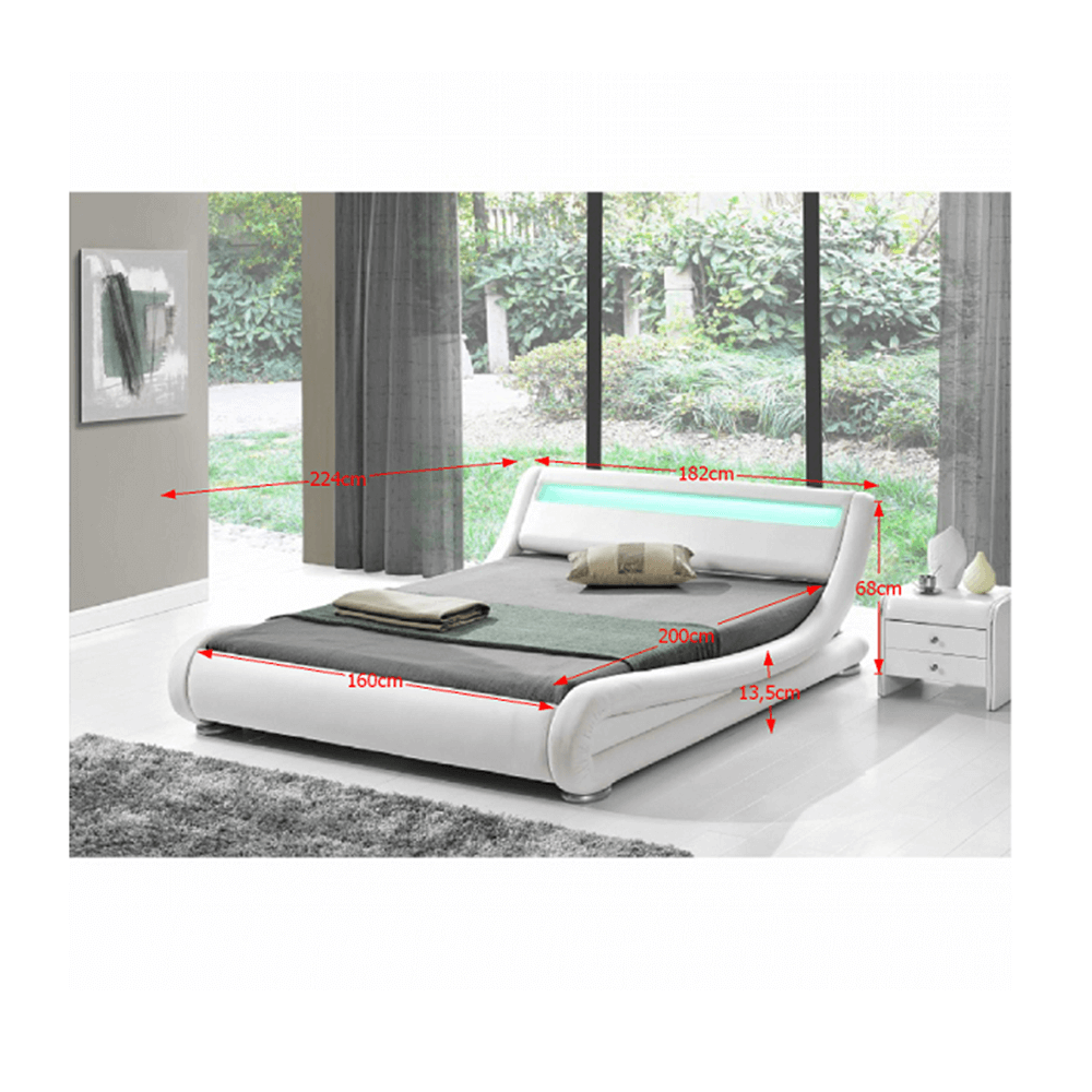 Moderná posteľ s lamelovým roštom a RGB LED osvetlením v čeleMateriál: ekokožaOderuodolnosť textílie podľa testu Martindale: 100 000 oderovRozmery (ŠxHxV): 182x224x68 cm, plocha na spanie (ŠxD): 160x200 cmNosnosť: 110 kgVýška postele po rošt: 13,5 cm, Odporúčaná výška matraca: 22-25 cmK posteli doporučujeme zakúpiť matrac o rozmere 160x200 cm na základe našej ponuky. Dodávané v demonte.