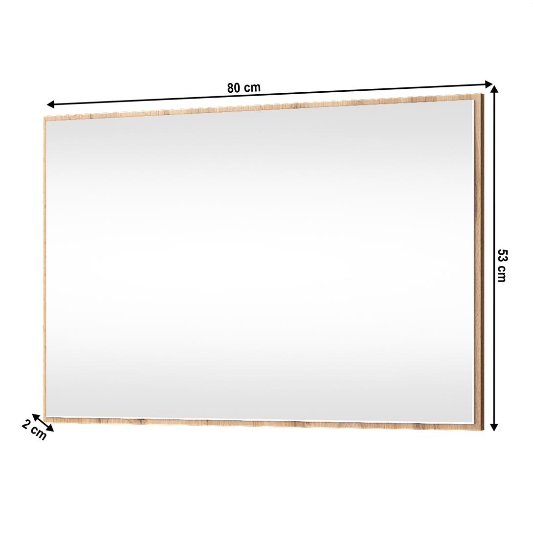Zrkadlo MORATIZ 80Materiál: DTD laminovaná/skloFarba: dub wotanRozmery (ŠxHxV): 80x2x53 cmHrúbka materiálu: 1,6 - 2,2 cmSo sklomV rámeDodávaná v demonte