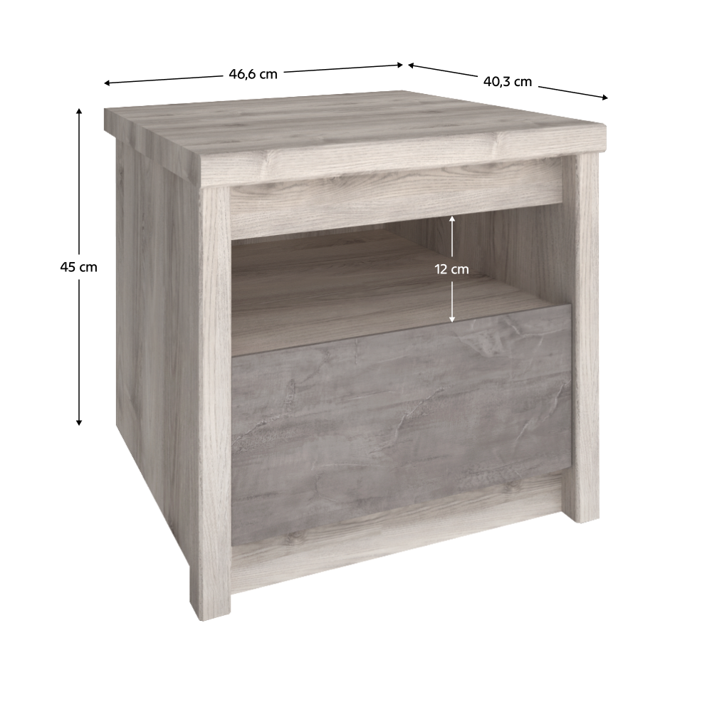 Materiál: DTD laminovanáFarba: gaštan nairobi/onyxRozmery (ŠxHxV): 46,6x45x40,3 cmHrúbka materiálu: 1,6-3,2 cmKovové úchytkyFarby úchytiek: čiernaOtvorená odkladacia plochaVýška otvorenej odkladacej plochy: 12 cmSo šuplíkomNosnosť šuplíka: 3 kgPlastové nožičkyModerný dizajnDodávané v demonte