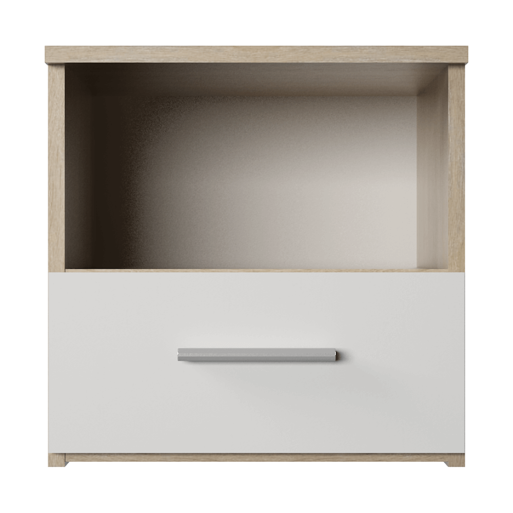 Nočný stolík GABRIELAMateriál: DTD laminovanáFarba: dub sonoma/bielaRozmery nočného stolíka (ŠxHxV): 41,8x38x40 cmS jedným šuplíkomOtvorená odkladacia plochaVýška šuplíka: 18,5 cmVýška otvorenej odkladacej plochy: 18 cmHrúbka materiálu: 1,6 cmDodávané 2 kusyKvalitný slovenský výrobokDodávané v demonte