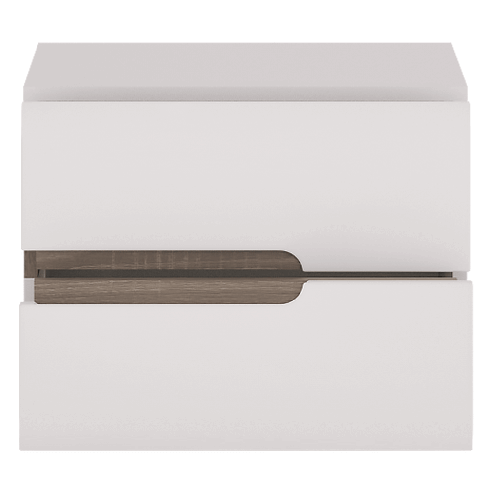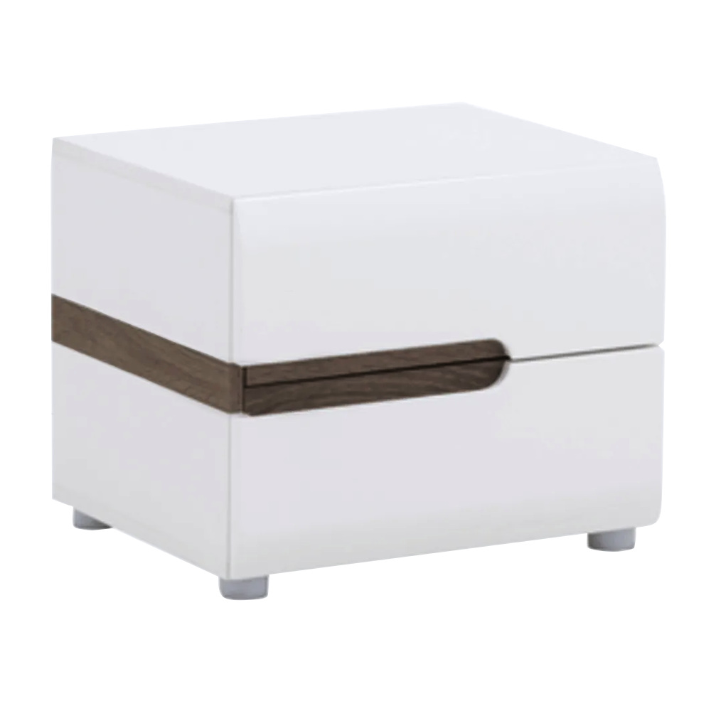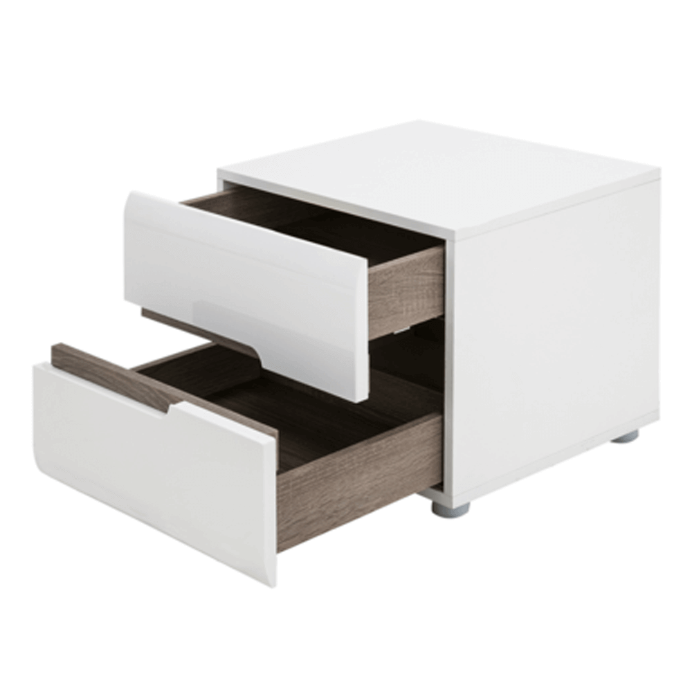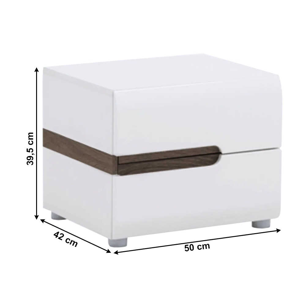 Nočný stolík LYNATET 96Prevedenie: biela extra vysoký lesk HG/dub sonoma truflovýMateriál: DTD laminovaná, dvierka MDF laminovanáDvierka majú moderné zaoblené hrany. Rozmery (ŠxHxV): 50x42x39,5 cm.Hrúbka materiálu: 16 mmKorpus je v matnom prevedeníDvierka sú v prevedení extra vysoký leskDodávané v demonte.
