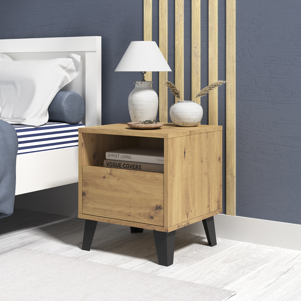 KONDELA Nočný stolík, dub artisan, BOGAN NEW 1S