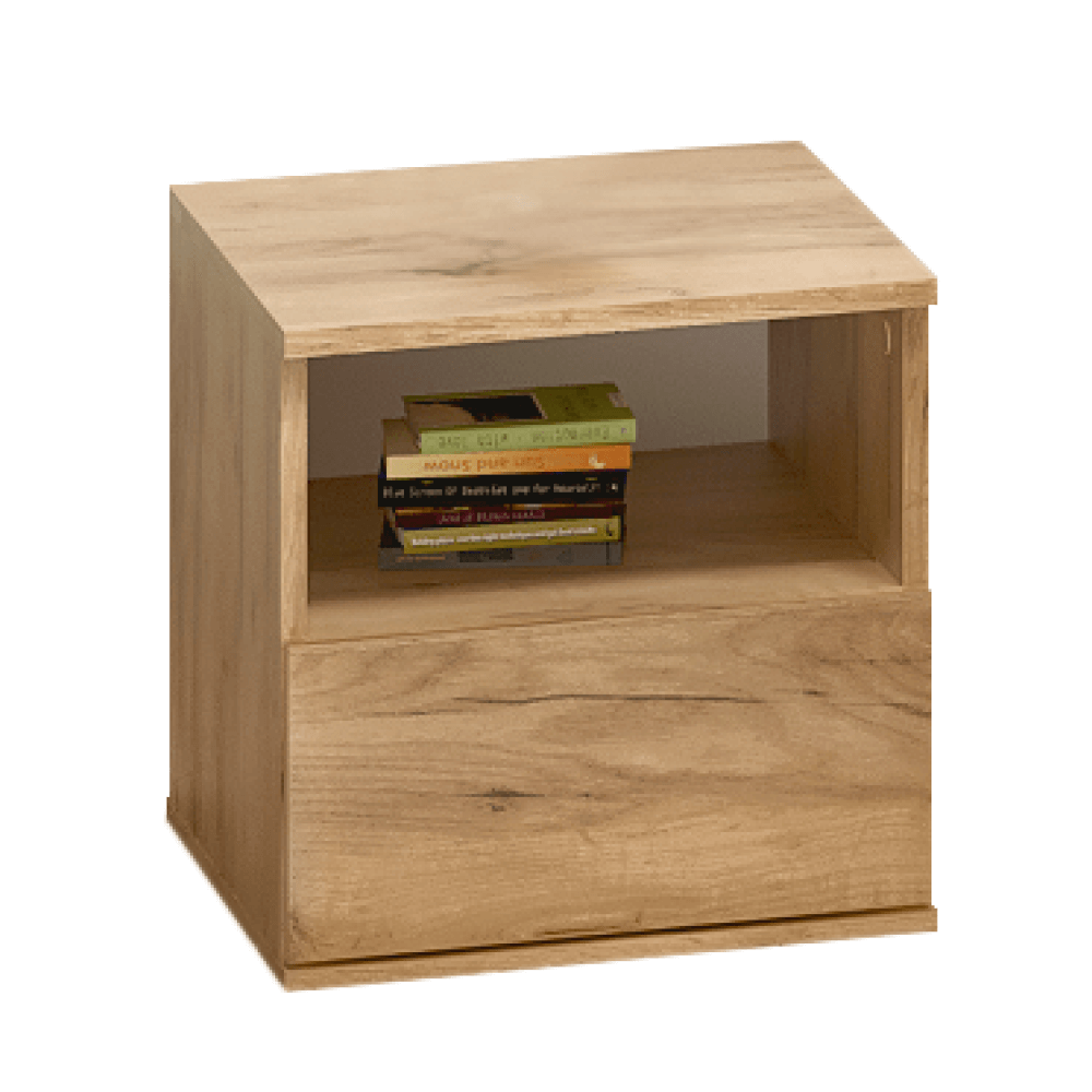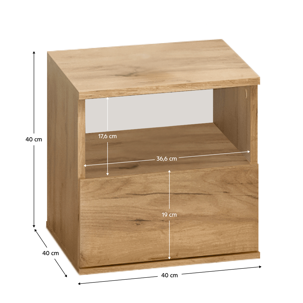 Materiál: laminovaná DTDFarba: dub craft zlatýRozmery (ŠxHxV): 40x40x40 cmHrúbka laminovanej DTD: 1,6 cmŠuplíkVýška šuplíka: 19 cmNosnosť šuplíka: 5 kgOtvorená odkladacia plochaVýška otvorenej odkladacej plochy: 17,6 cmPlastové nožičky- klzákyNosnosť: 10 kgBez úchytiekModerný dizajnKvalitný slovenský výrobokDodávané v demonte