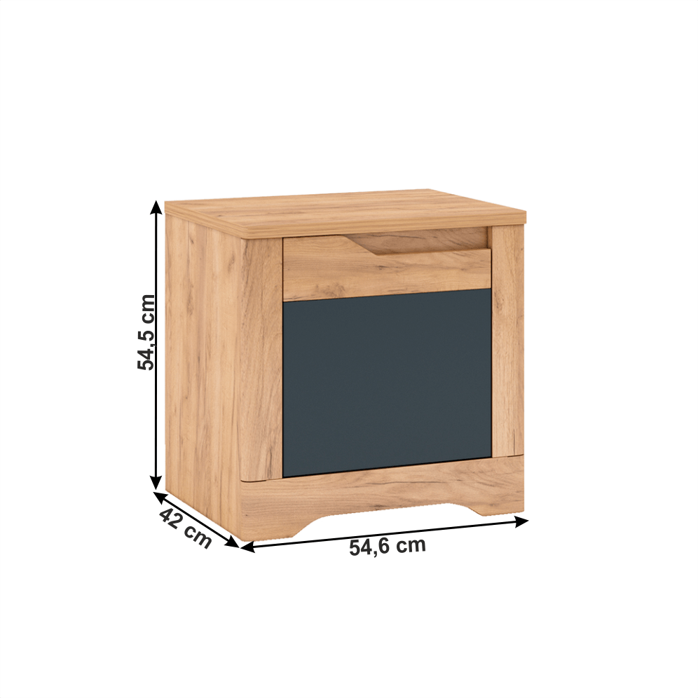 Materiál: DTD laminovaná/MDFFarba: dub craft zlatý/grafit siváRozmery (ŠxHxV): 54,6x42x54,5 cmHrúbka materiálu korpus: 16 mmHrúbka materiálu vrchná doska: 22 mmJedna skrinkaĽavé prevedenieDodávané v demonte
