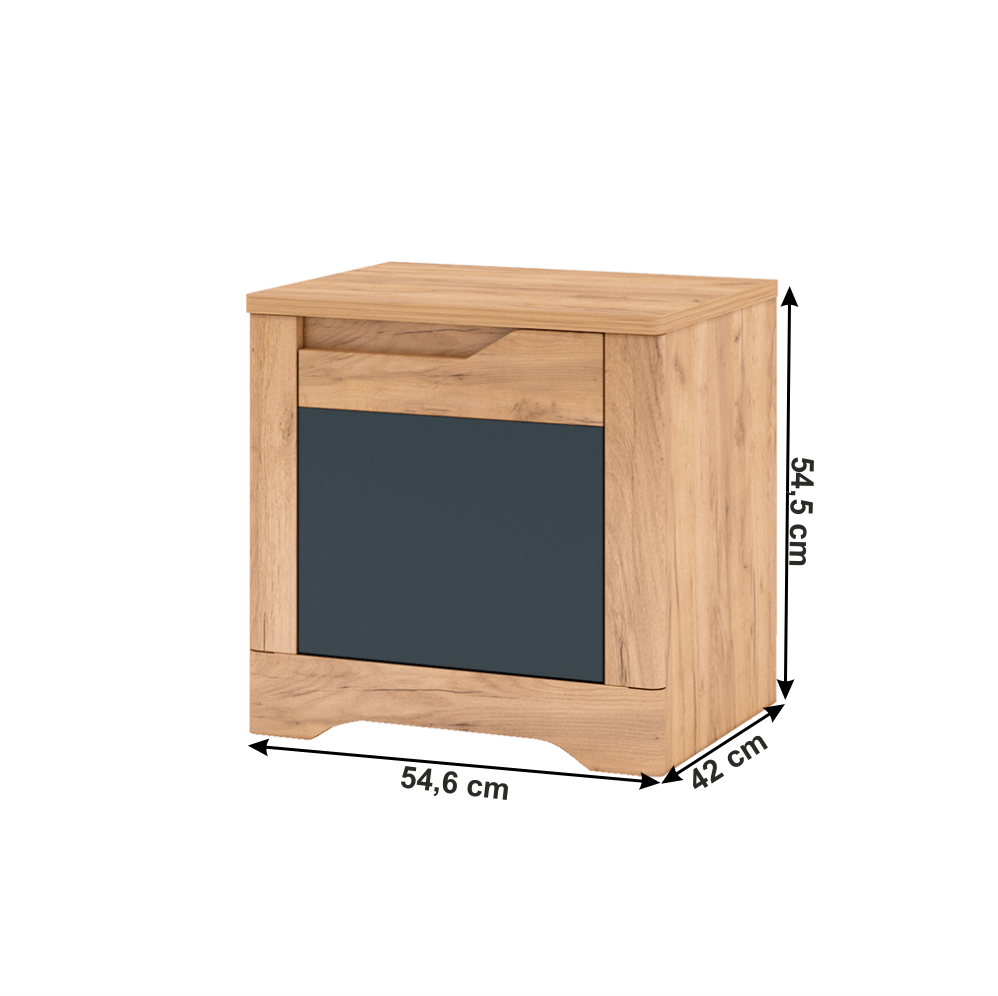 Materiál: DTD laminovaná/MDFFarba: dub craft zlatý/grafit siváRozmery (ŠxHxV): 54,6x42x54,5 cmHrúbka materiálu korpus: 16 mmHrúbka materiálu vrchná doska: 22 mmJedna skrinkaPravé prevedenieDodávané v demonte