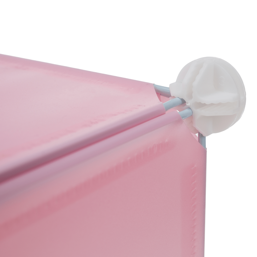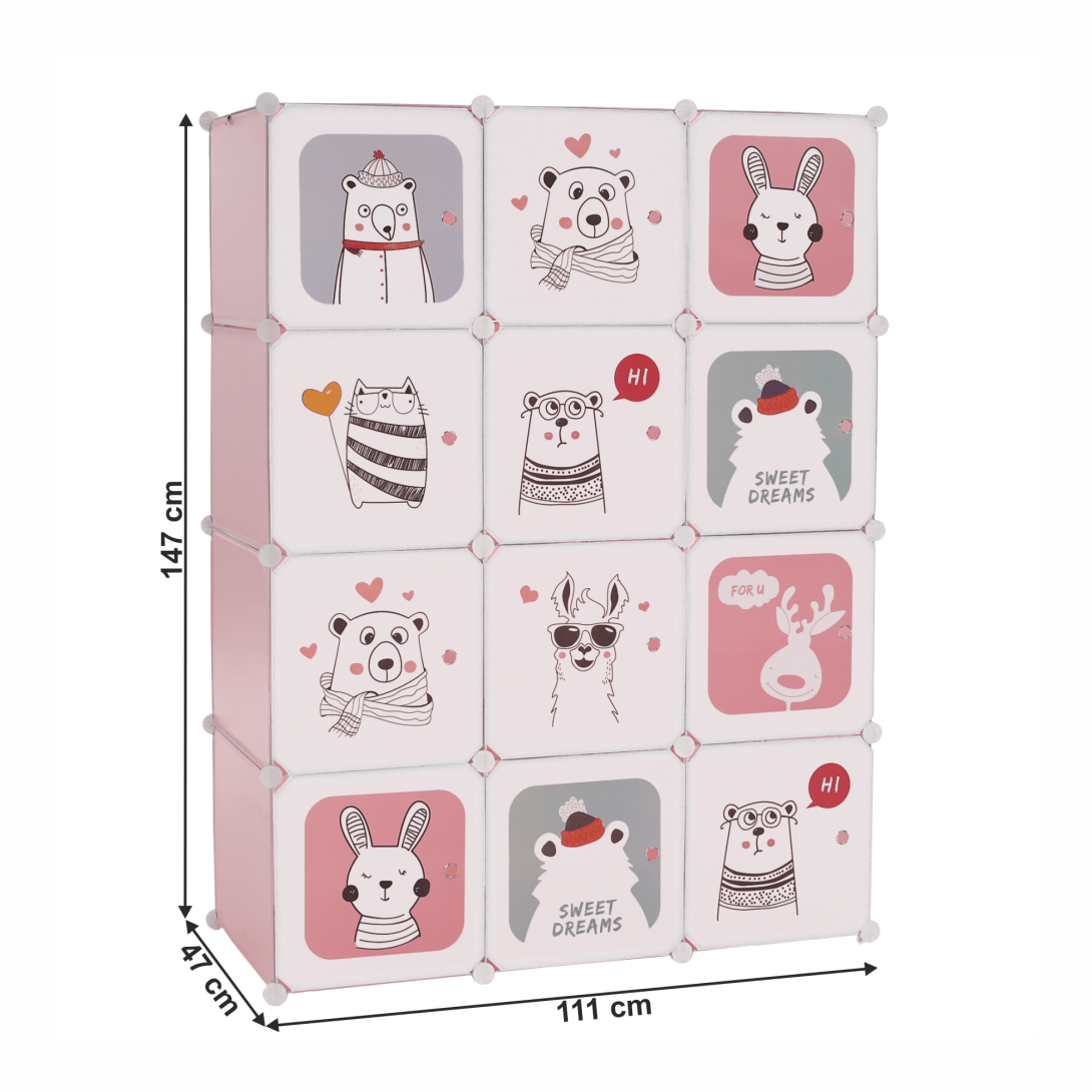 Materiál konštrukcie: kovMateriál box: plastFarba: ružová / detský vzorRozmery (ŠxHxV): 111x47x147 cmSpojovacie prvky vyrobené z pevného ABS plastuRôzne varianty rozmiestnenie polícNosnosť boxu: 5 kgTri boxy s vešiakovými tyčamiDvanásť úložných boxovBoxy treba rovnomerne zaťažovaťVnútorné rozloženie skrine si viete prispôsobiťDetskázávesnákovová konštrukciaVhodná do detských iziebDodávané v demonteV balení sa nachádza upevnenie k stene, ktoré je potrebné používať spolu s výrobkom, aby nedošlo k prevráteniu.Výhodou modulárneho typu nábytku je to, že si skriňu môžete zmontovať podľa vlastných potrieb. Vnútorné rozloženie skrine nemusí byť také ako na obrázku, vešiakovú aj policovú časť si viete rozvrhnúť podľa toho, ako práve potrebujete.