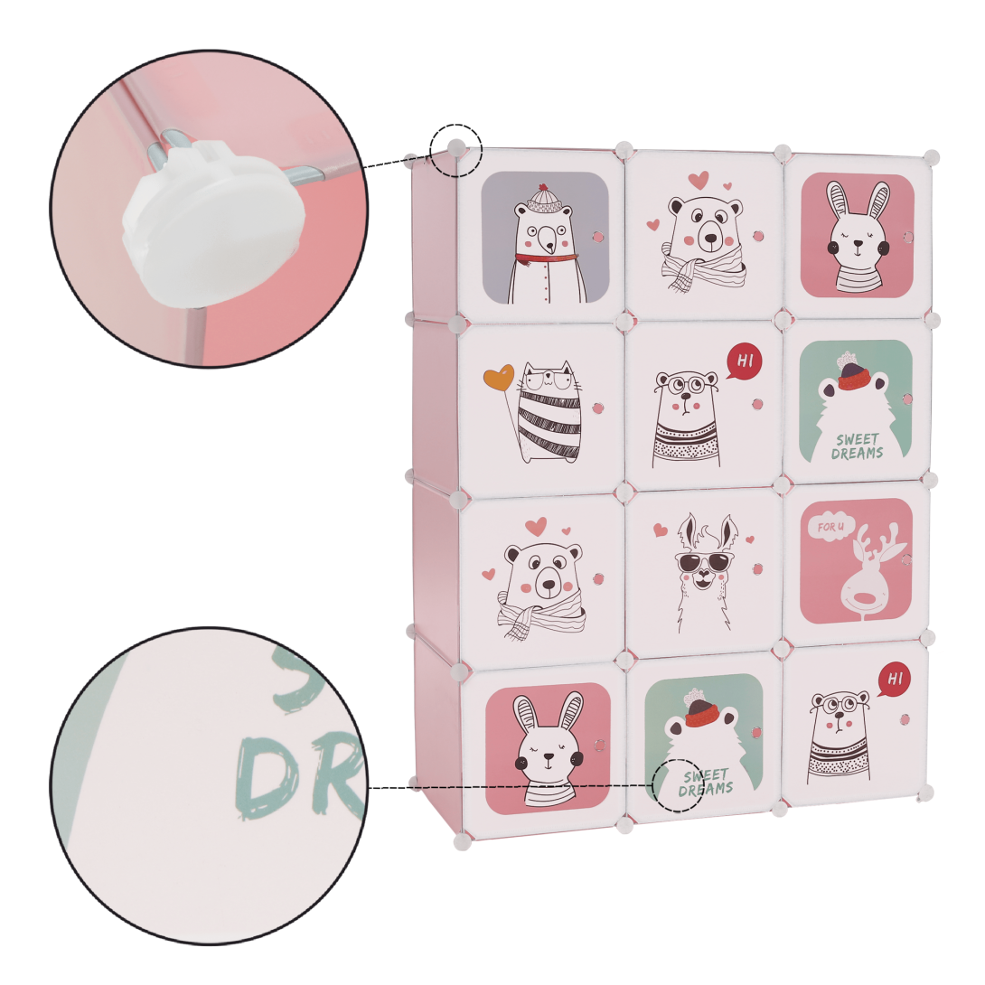 KONDELA NURMI DETSKA MODULARNA SKRINA, RUZOVA/DETSKY VZOR