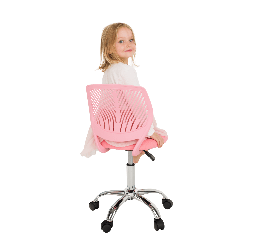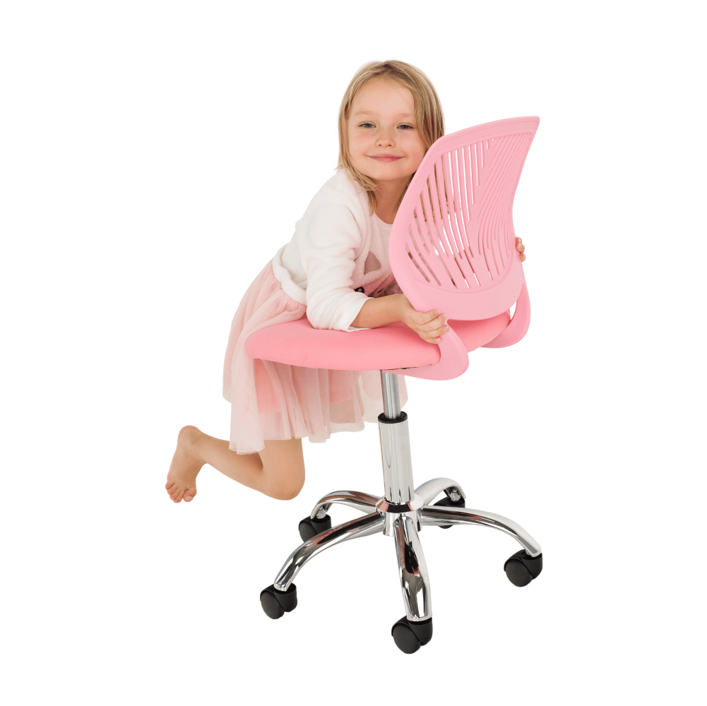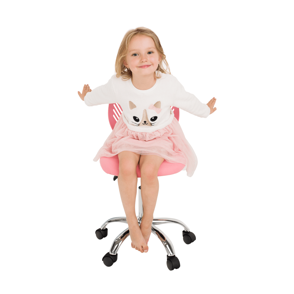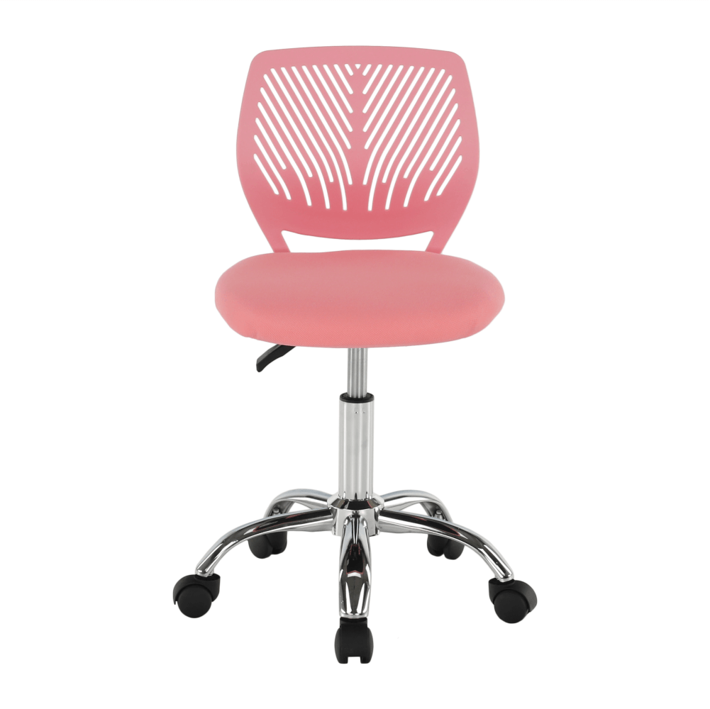 Materiál: polyester/kovOderuodolnosť textílie podľa testu Martindale: 100 000 oderovFarba: ružová/chrómRozmery (ŠxHxV): 53x53x74,5-86,5 cmNastaviteľná výška sedu : 42-54 cmHĺbka sedu : 38 cmŠírka sedu : 40 cmVýška chrbtovej opierky: 32 cmŠírka chrbtovej opierky: 36 cmNosnosť: 80 kgOtočnáS kolieskamiPerforované operadloDodávané v demonte