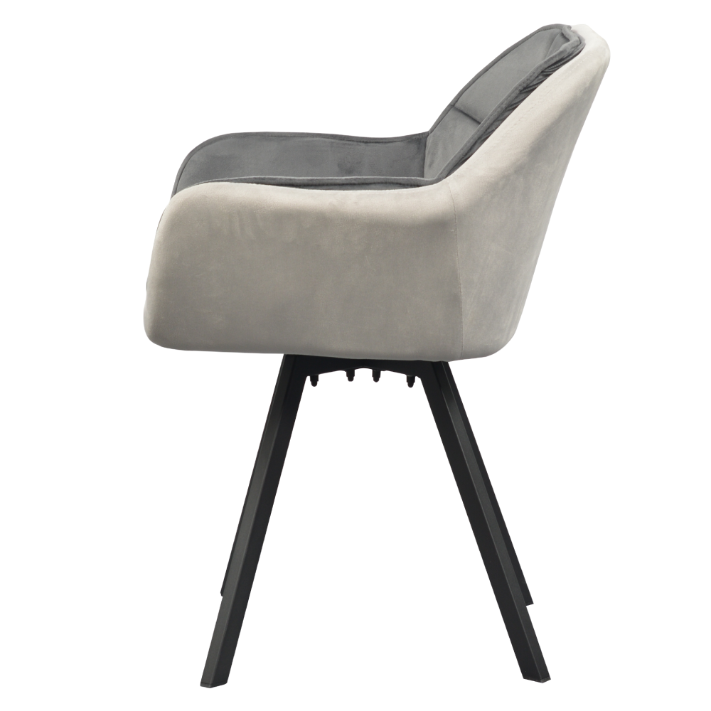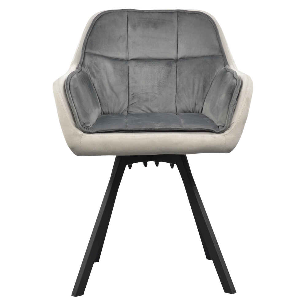 Materiál: látka Velvet/kovOderuodolnosť textílie podľa testu Martindale: 85 000 oderovFarba: sivá/svetlosivá/čiernaRozmery (ŠxHxV): 57x52x87 cmVýška sedu: 52 cmHĺbka sedu: 40 cmŠírka sedu: 38 cmŠírka chrbtovej opierky: 35 cmVýška chrbtovej opierky: 40 cmNosnosť: 100 kgHmotnosť: 6 kgOtočné sedadloDizajnovéPrešívanéDodávané v demonte
