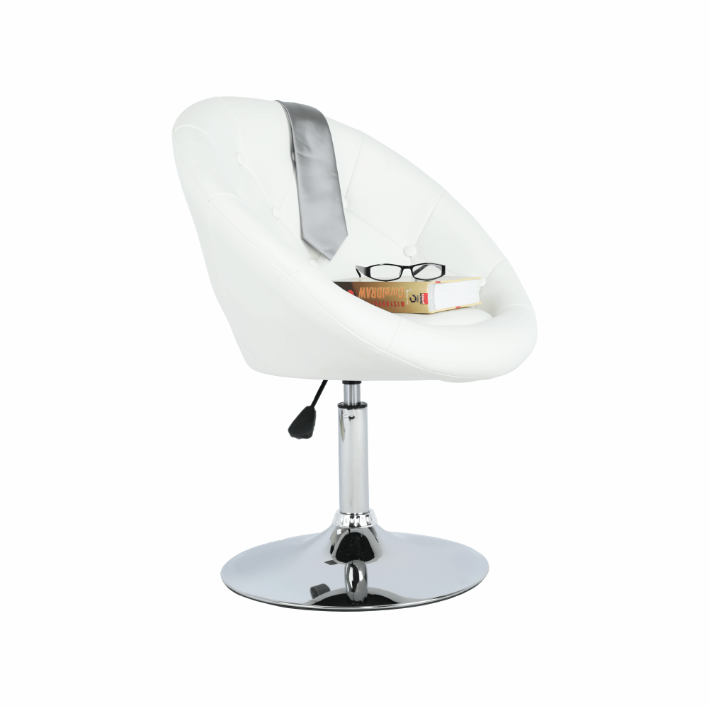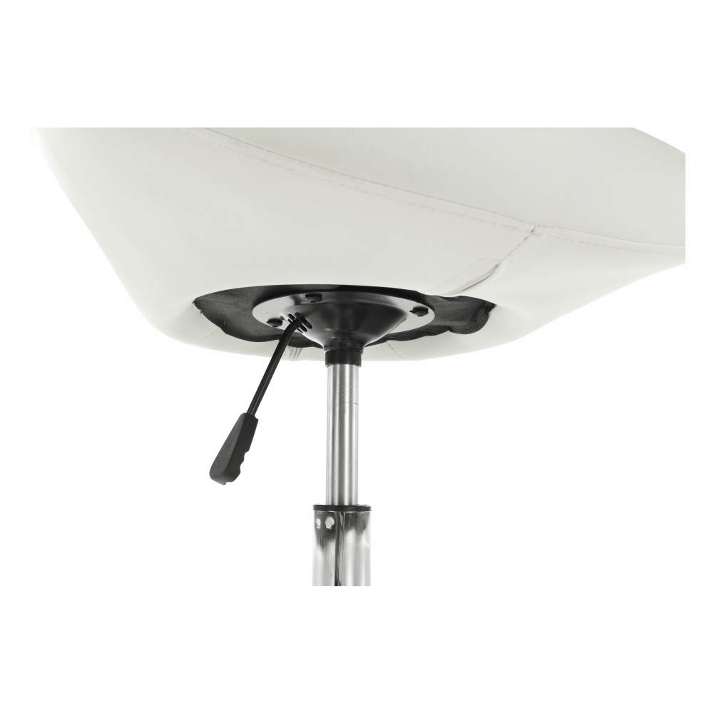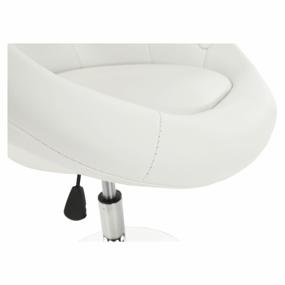 Materiál: ekokoža/kovOderuodolnosť textílie podľa testu Martindale: 100 000 oderovFarebné prevedenie: biela/chrómRozmery (ŠxHxV): 64x56x79-94 cmVýška sedu: 44-59 cmHĺbka sedu: 42 cmŠírka sedu: 36 cmVýška chrbtovej opierky: 37 cmŠírka chrbtovej opierky: 64 cmNosnosť: 100 kgS mäkkým sedadlomOtočnéS prešívanou opierkou chrbtaNsdtaviteľná výška seduDodávaný v demonte.